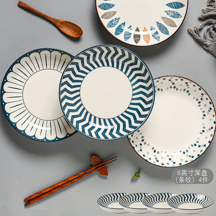 【釉下彩】日式陶瓷盘子4件菜盘家用网红深盘碟子餐盘