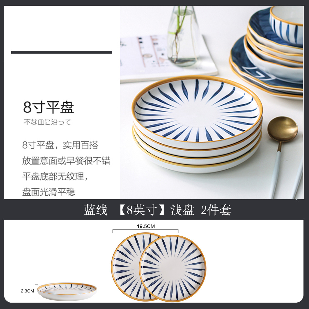 日式8英寸陶瓷盘子菜盘碟子家用创意特色餐具网红餐盘