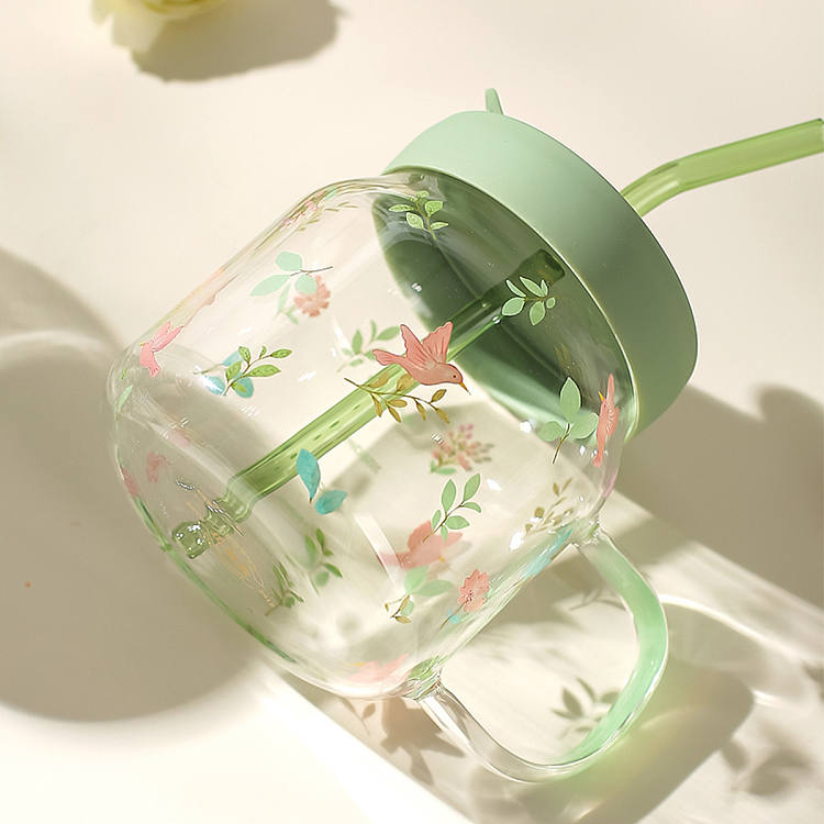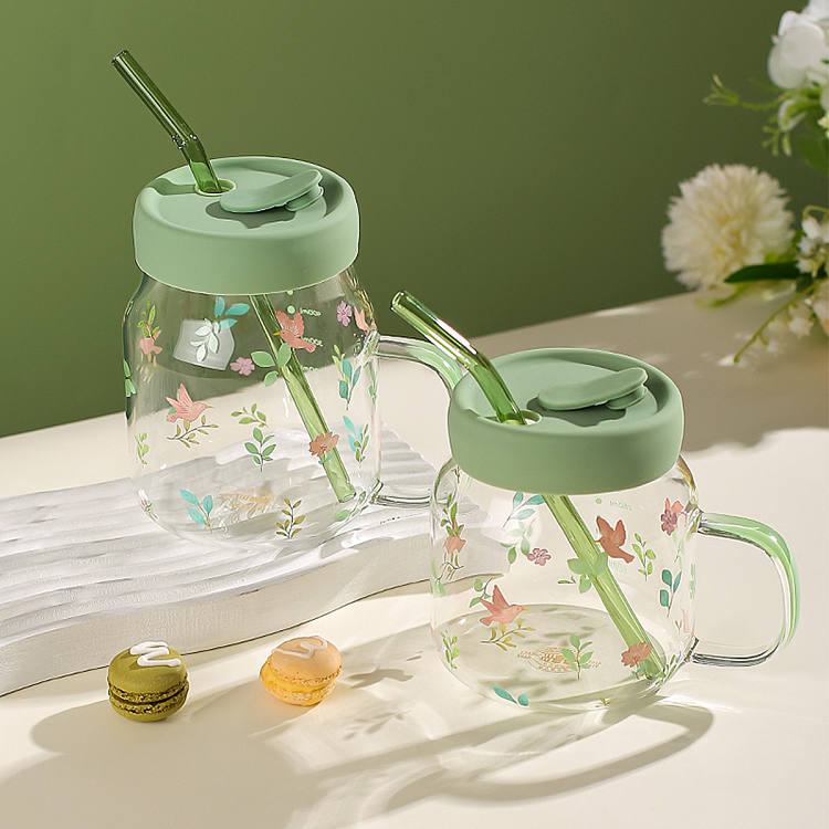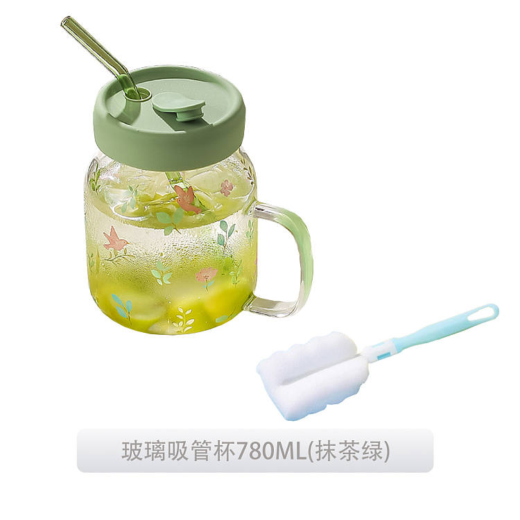 【780ml】 玻璃杯子吸管杯情侣闺蜜办公室水杯大容量高颜值果汁奶茶