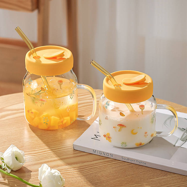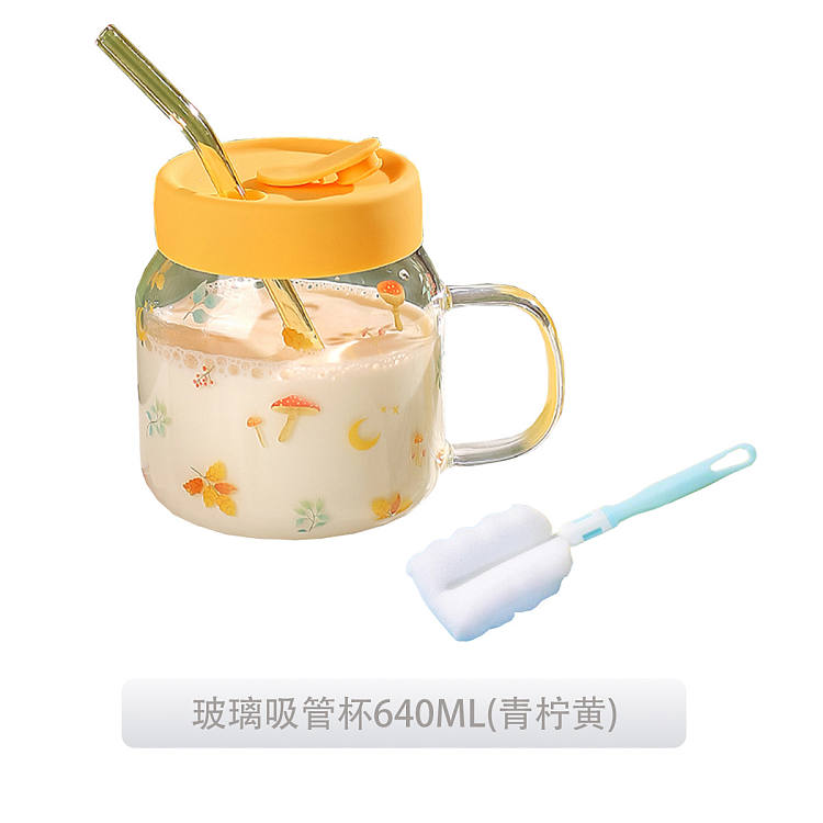 【640ml】 玻璃杯子吸管杯情侣闺蜜办公室水杯大容量高颜值果汁奶茶