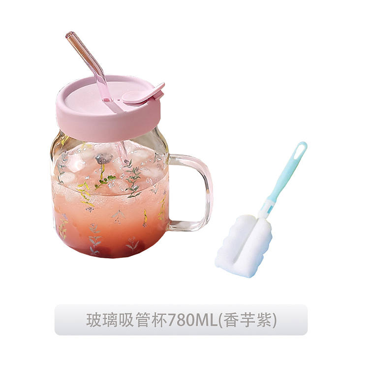 【780ml】 玻璃杯子吸管杯情侣闺蜜办公室水杯大容量高颜值果汁奶茶