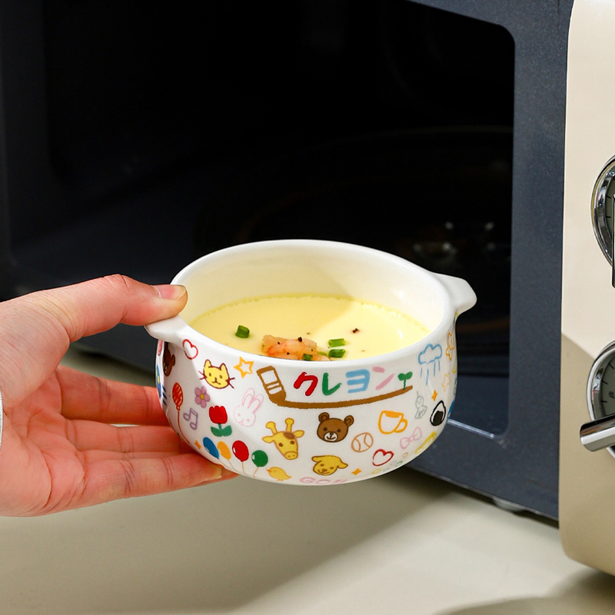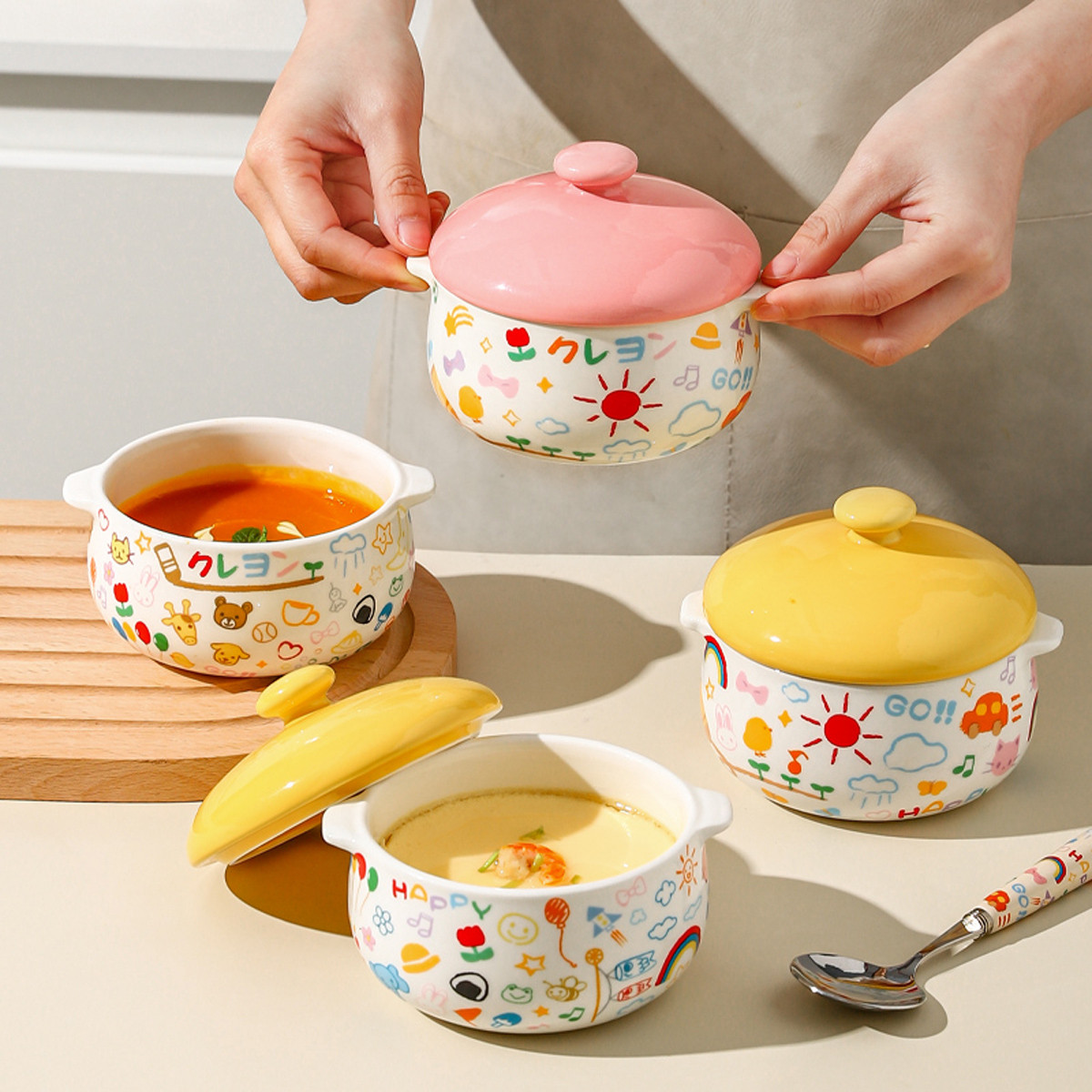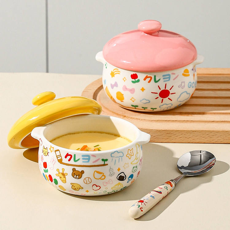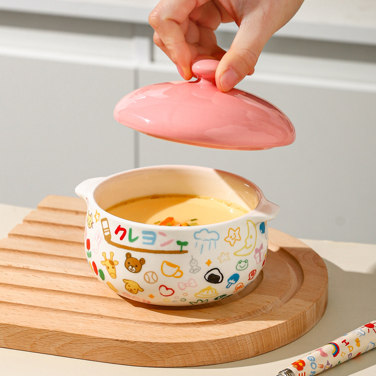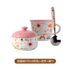 【蒸蛋碗330ml+奶杯+餐勺】 陶瓷蒸蛋碗专用婴儿带盖儿童宝宝辅食鸡蛋羹炖蛋碗家用可爱