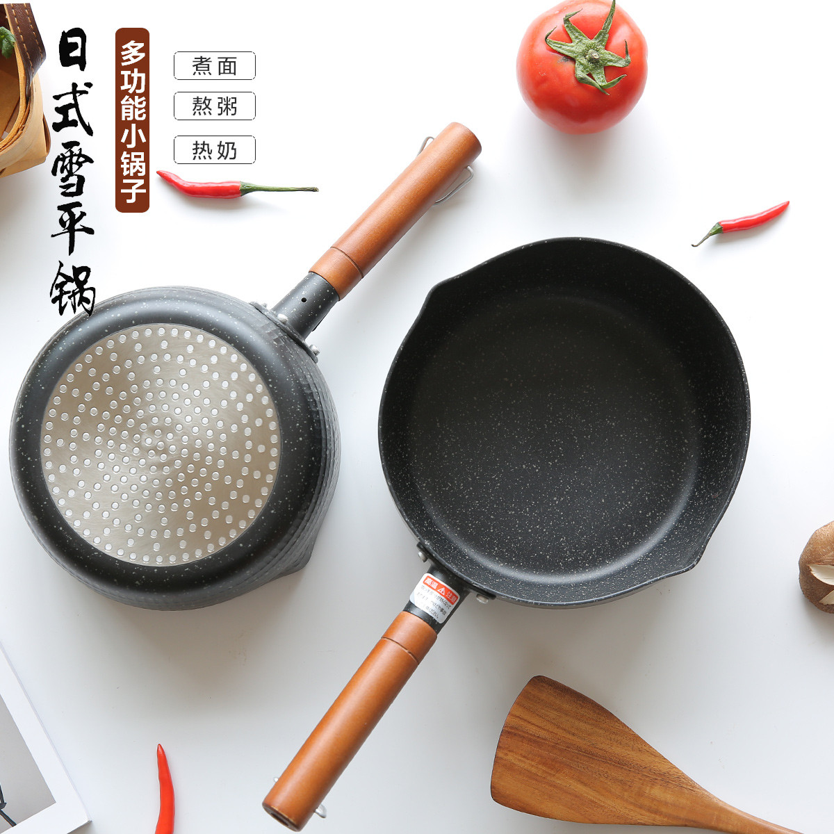 【20cm+带盖蒸笼套装】 【多用途】日式雪平锅煮面泡面锅家用小奶锅燃气灶适用不粘锅