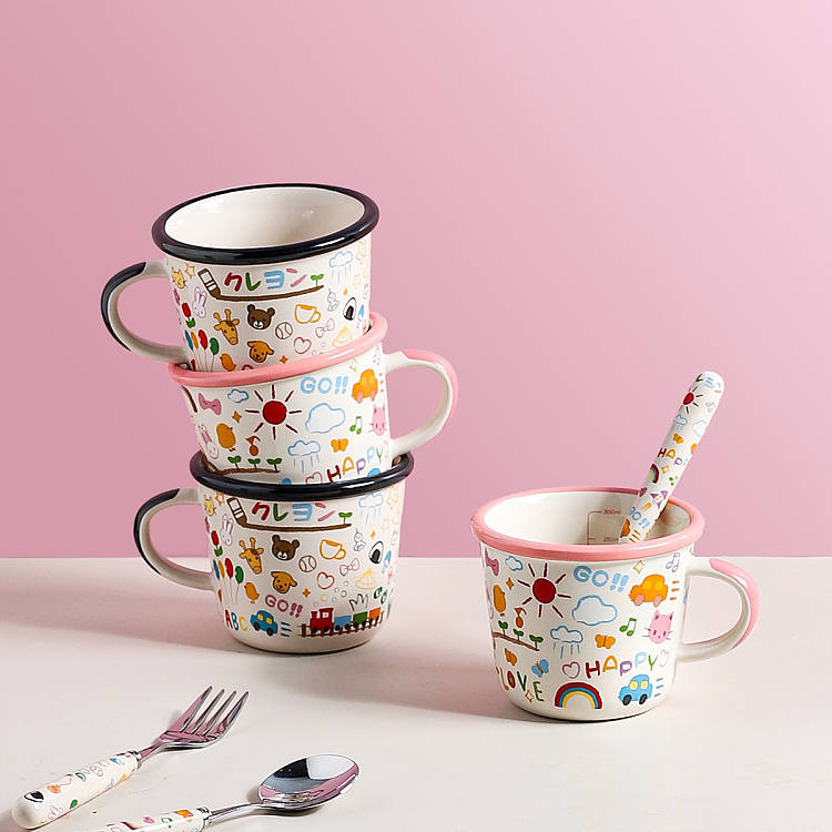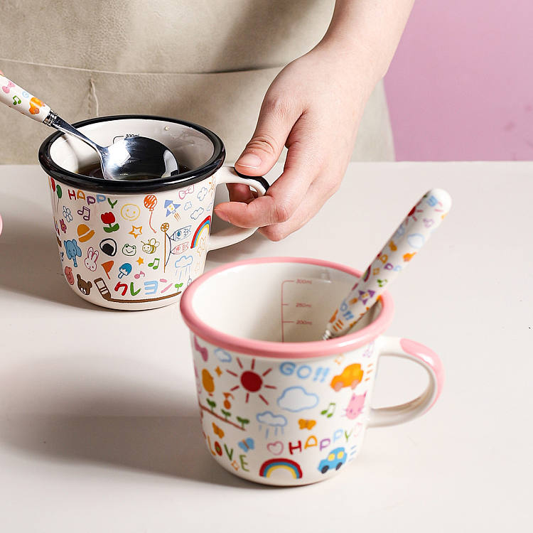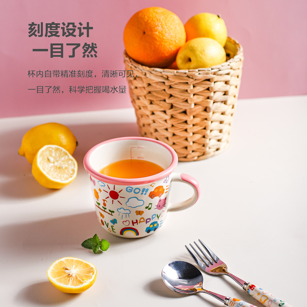【马克杯+勺+杯垫】 马克杯家用陶瓷带刻度小号喝水杯子女咖啡杯早餐牛奶杯