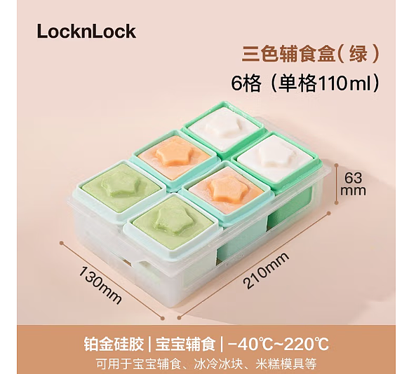 乐扣乐扣婴儿辅食盒冰格分装盒制冰盒宝宝肉泥硅胶冷冻格冰块模具