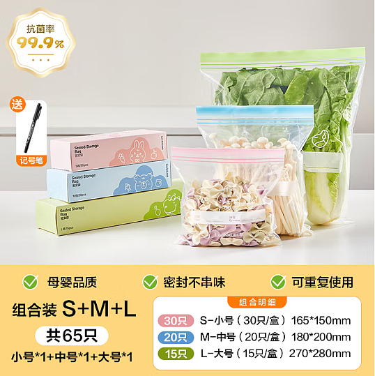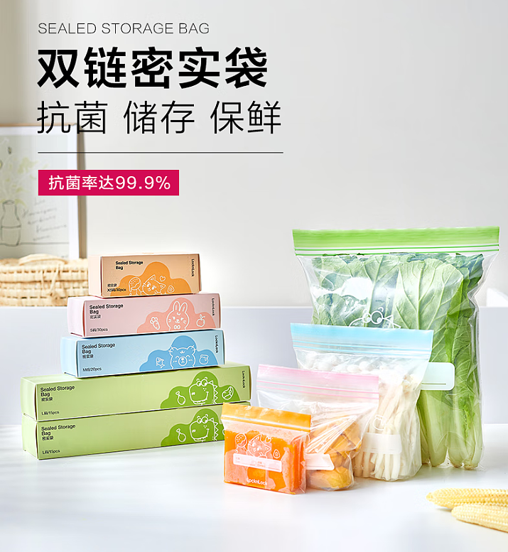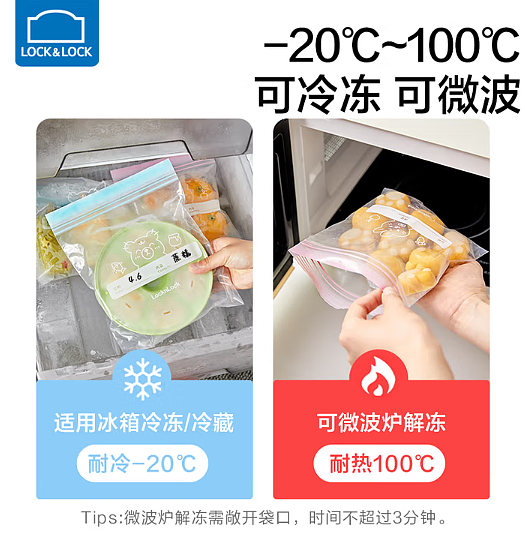 乐扣乐扣密封袋食品保鲜袋带封口家用储存冰箱冷冻宝宝辅食分装袋