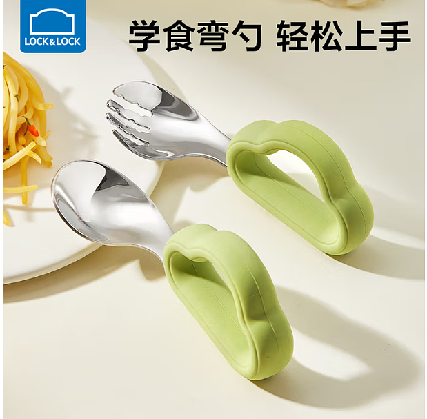 乐扣乐扣宝宝辅食勺自主进食不锈钢勺子婴儿童学吃饭叉勺餐具套装