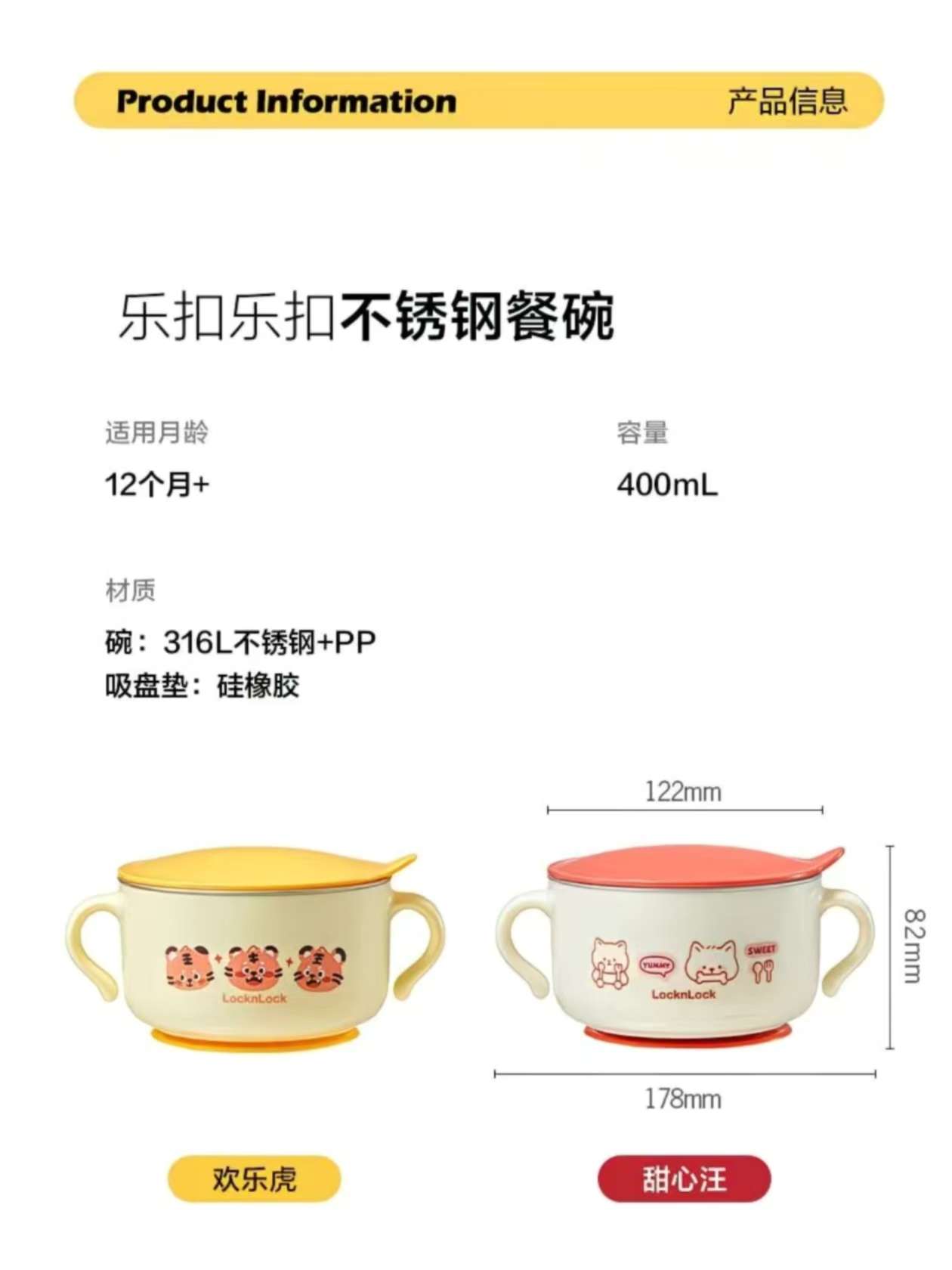 乐扣乐扣保温碗婴幼儿辅食专用宝宝吃饭碗不锈钢儿童餐具保温饭盒