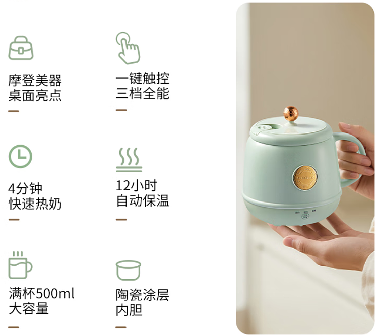 乐扣迷你养生壶小型办公室一人热牛奶杯陶瓷电煮杯宿舍烧水壶炖杯