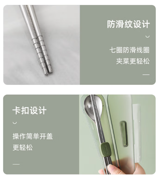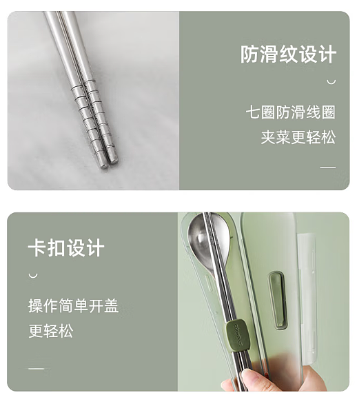 乐扣乐扣便携餐具盒304不锈钢勺子筷子餐具套装男女学生带饭筷