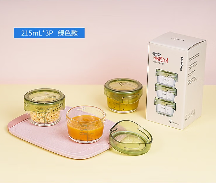 乐扣乐扣玻璃辅食盒套装婴幼儿保鲜碗可蒸煮微波炉加热冰箱收纳