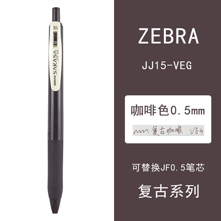 日本ZEBRA斑马JJ15复古5色中性笔暗色SARASA系按动水笔咖啡色0.5MM*3