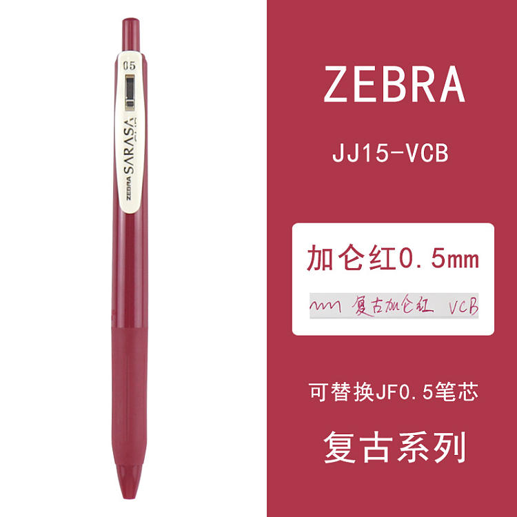 日本ZEBRA斑马JJ15复古5色中性笔暗色SARASA系按动水笔加仑红0.5MM*3