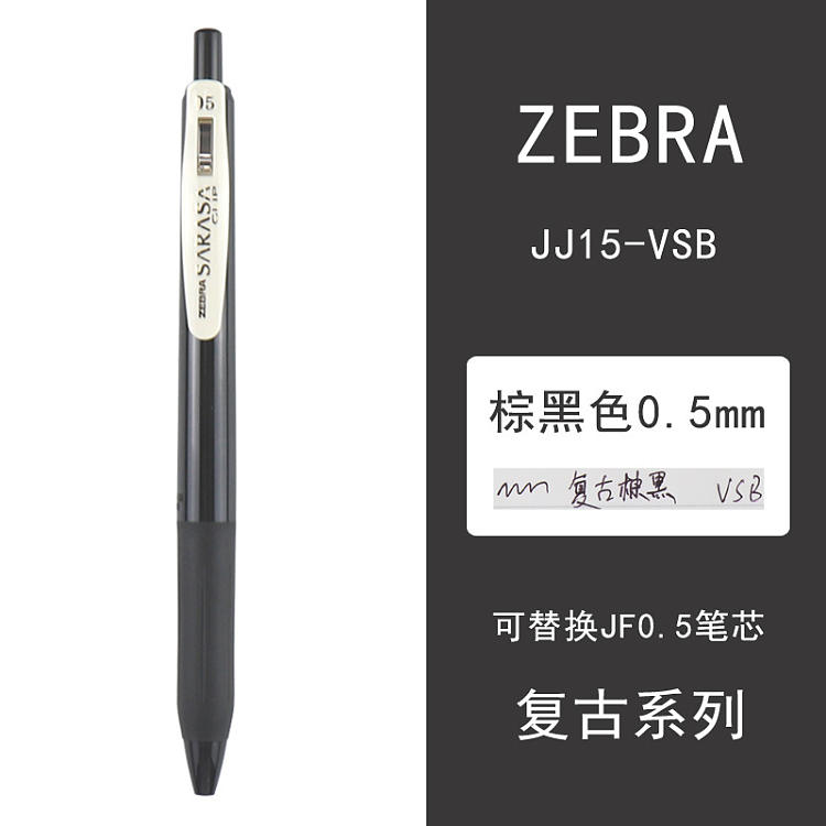 日本ZEBRA斑马JJ15复古5色中性笔暗色SARASA系按动水笔墨黑色0.5MM*3