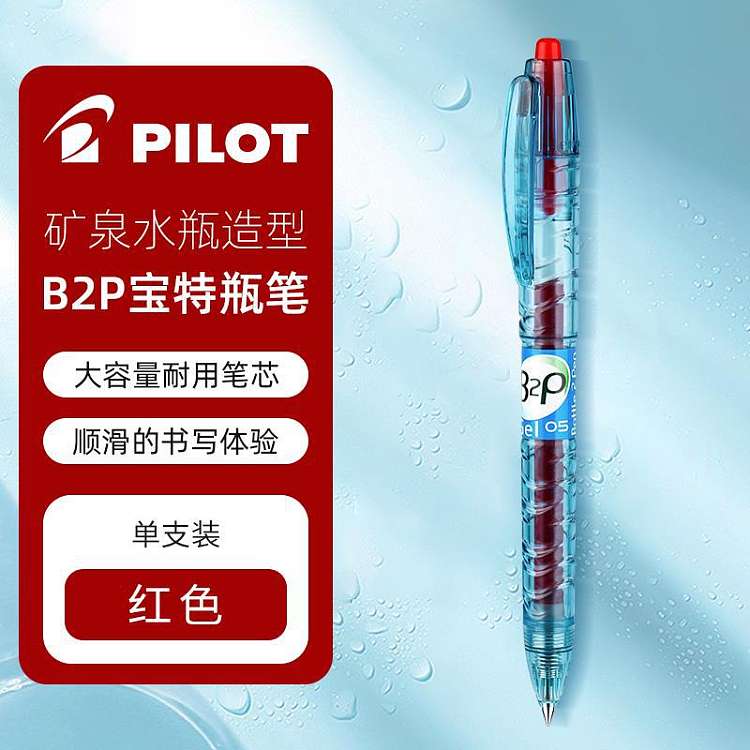 日本PILOT百乐宝特瓶笔B2P矿泉水笔黑色考试刷题中性笔学生用0.5MM红色*3