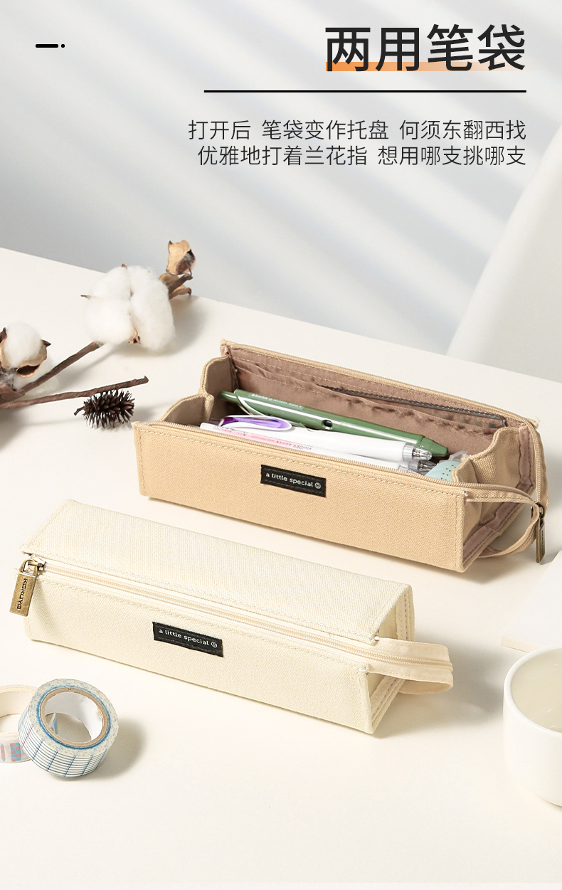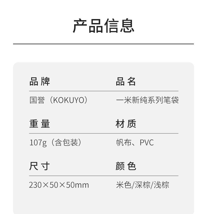 kokuyo国誉一米新纯笔袋学生用大容量文具袋简约文具盒浅棕色*2