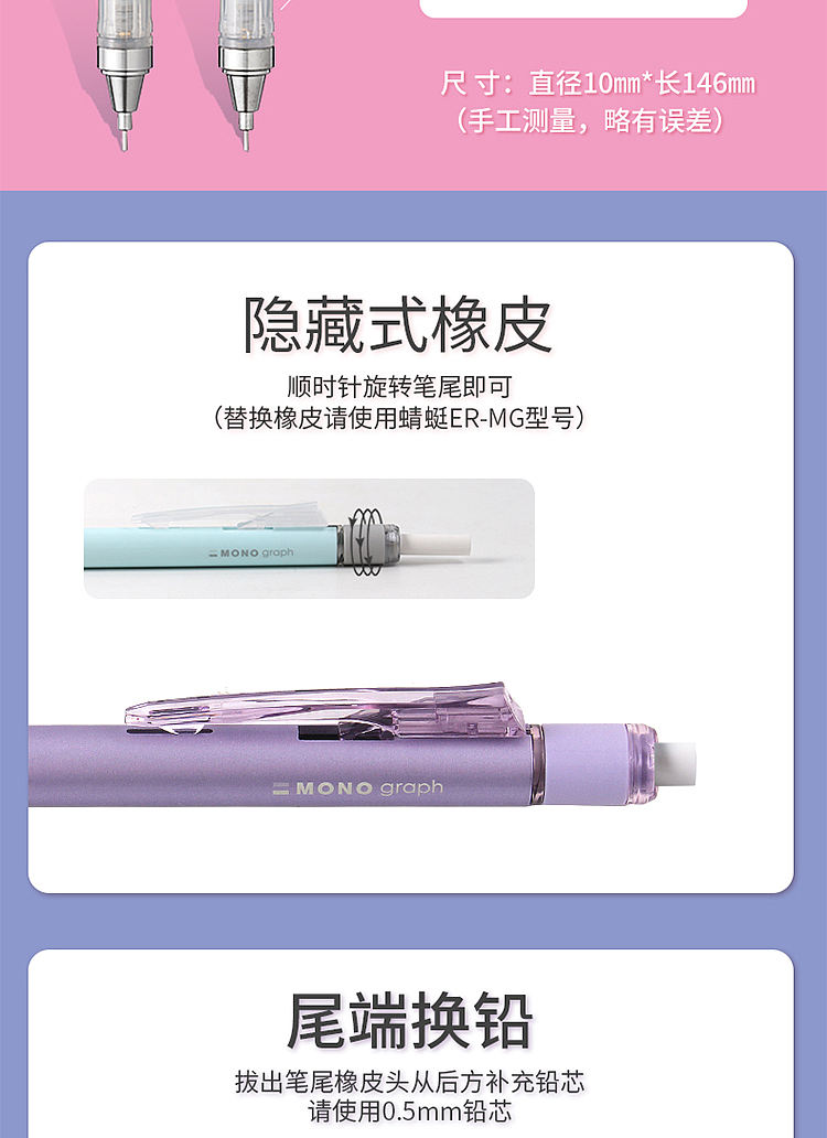 日本TOMBOW蜻蜓MONOgraph甜点系列限定款摇摇出铅自动铅笔樱花粉色*2