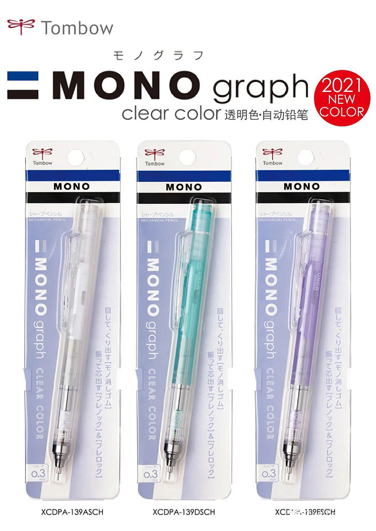 日本Tombow蜻蜓MONOgraph淡彩透明自动铅笔0.5mm透明粉色*2