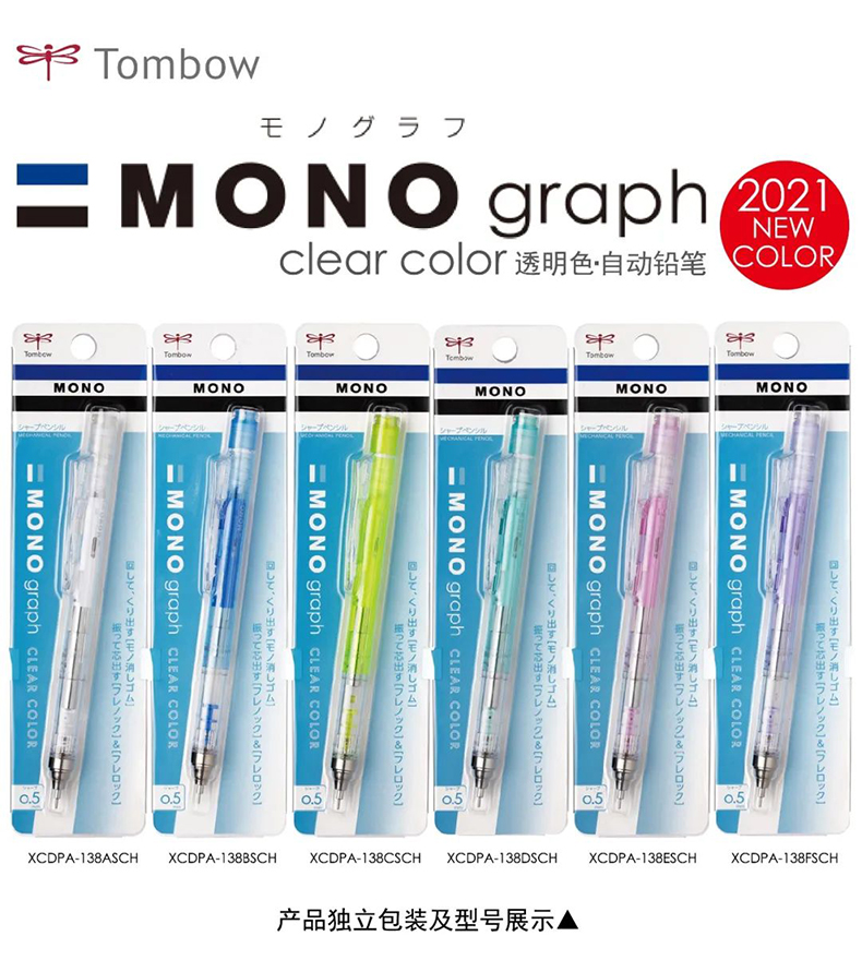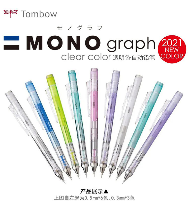 日本Tombow蜻蜓MONOgraph淡彩透明自动铅笔0.5mm透明紫色*2