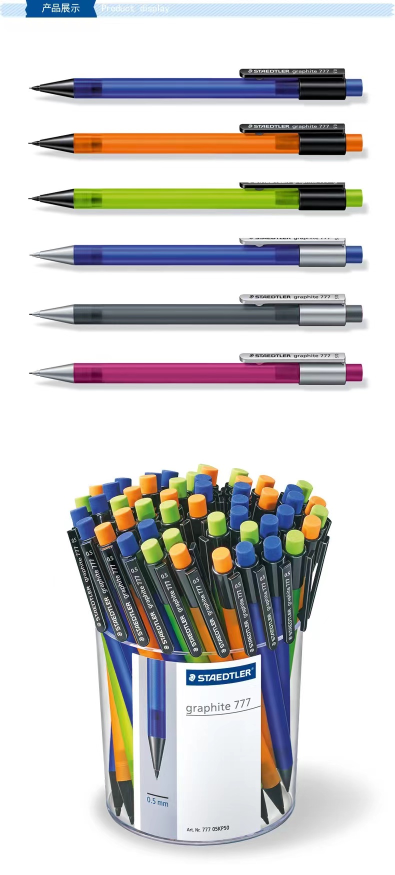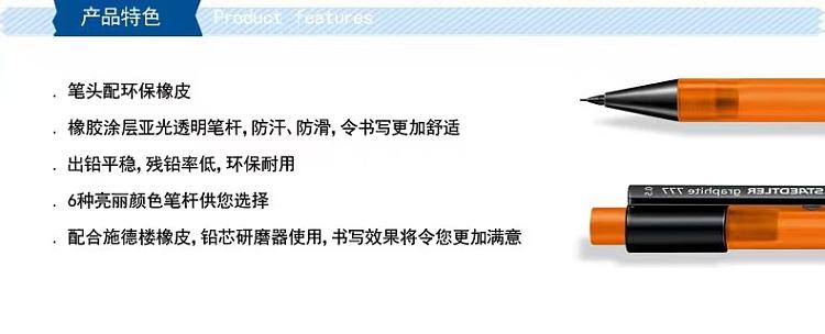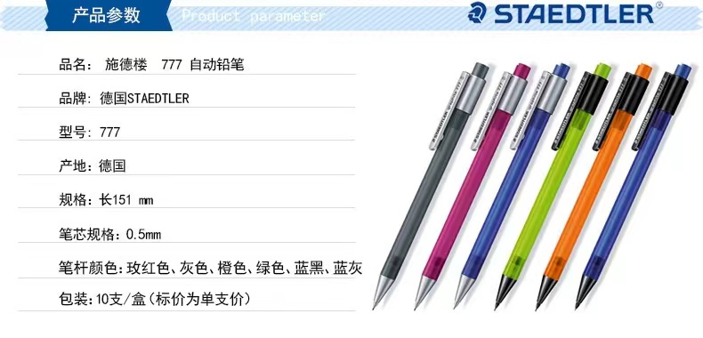 德国STAEDTLER施德楼777彩色笔杆 0.5办公学生自动铅笔(2支)