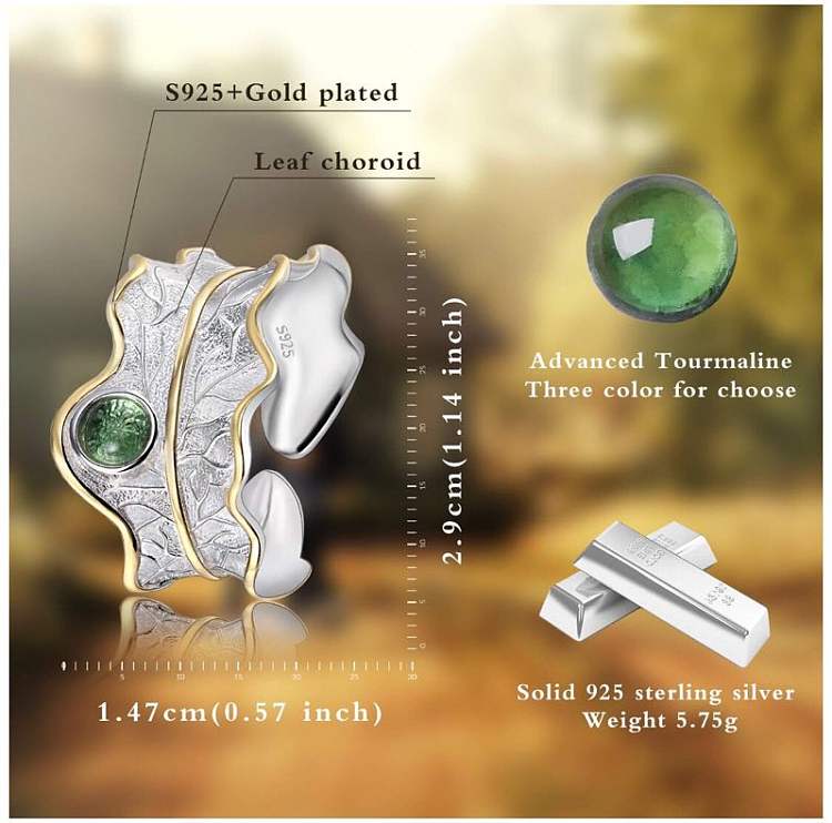 材质:925纯银(防过敏)、金边由18K金硬度、镶嵌巴西碧玺石