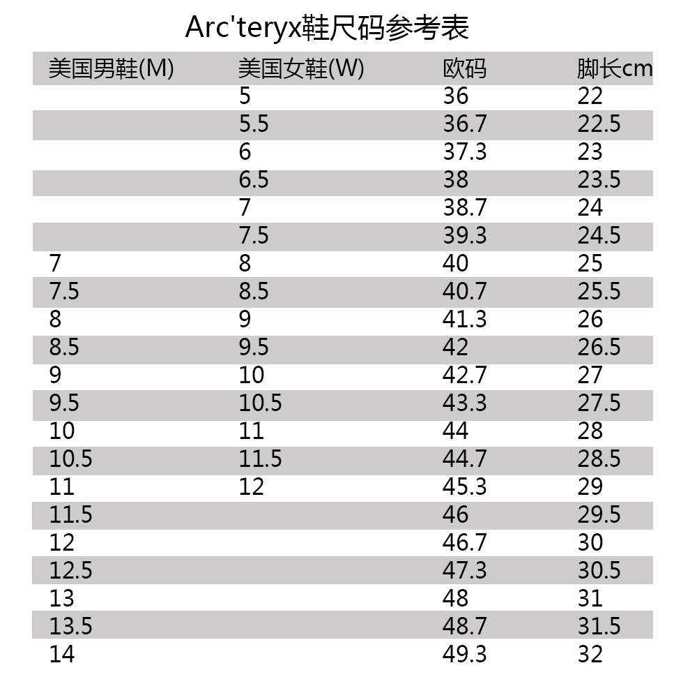 Acrux AR登山靴客服贴士这款靴子使用英国尺码,请参考“鞋品尺码表”,以选择最合适的尺码。