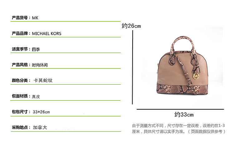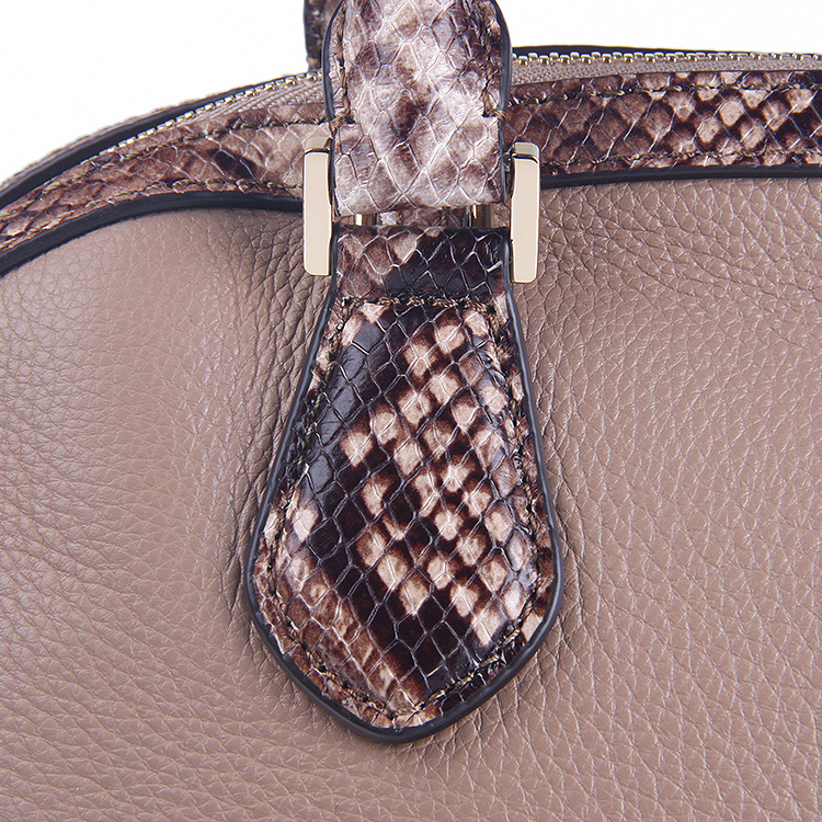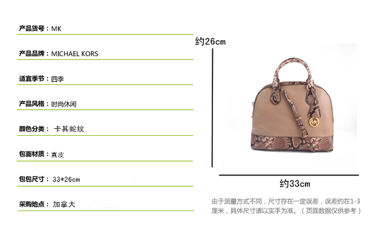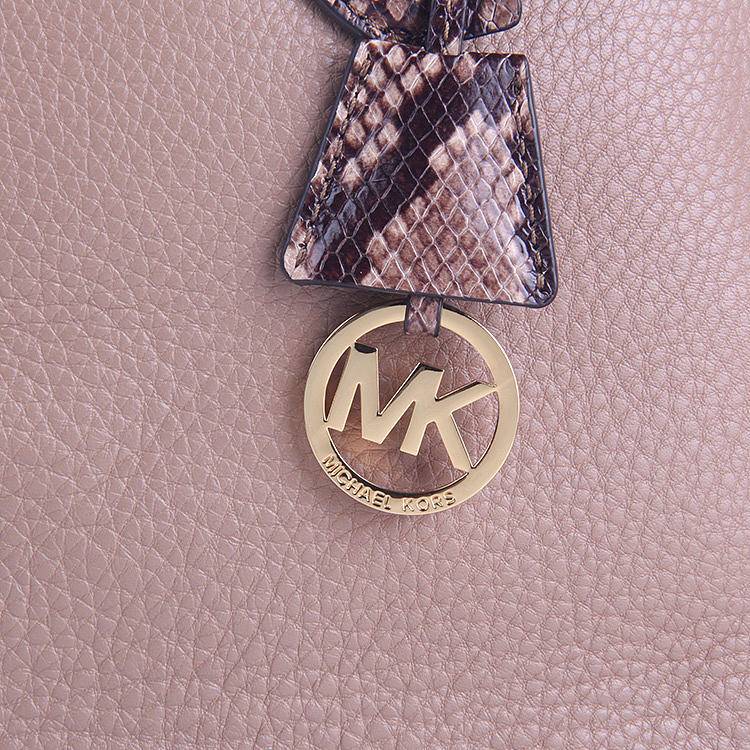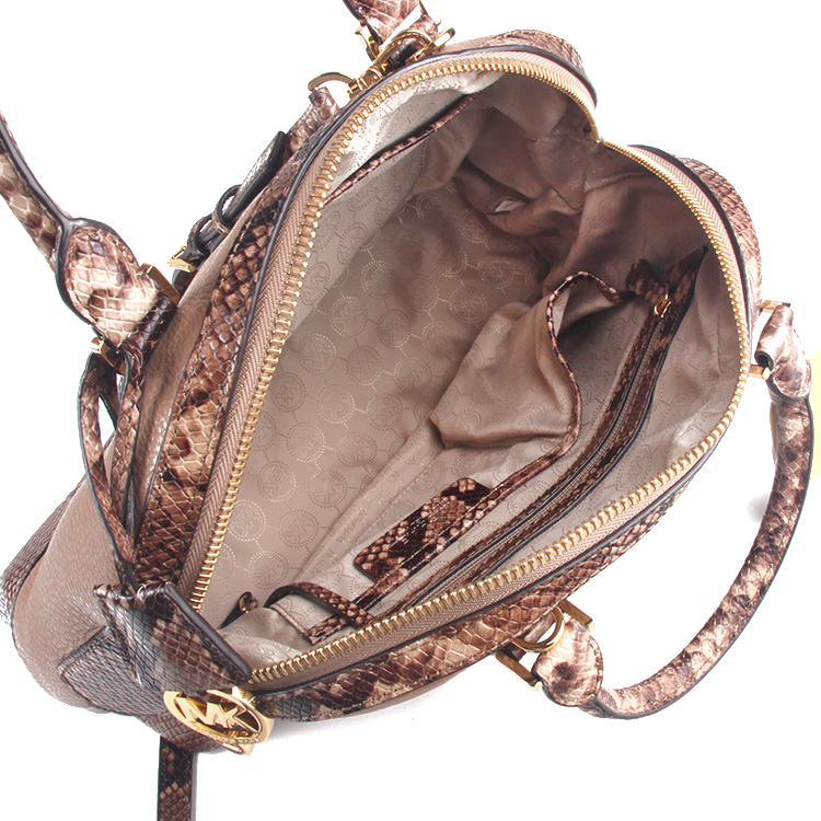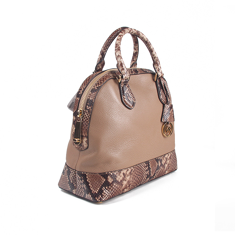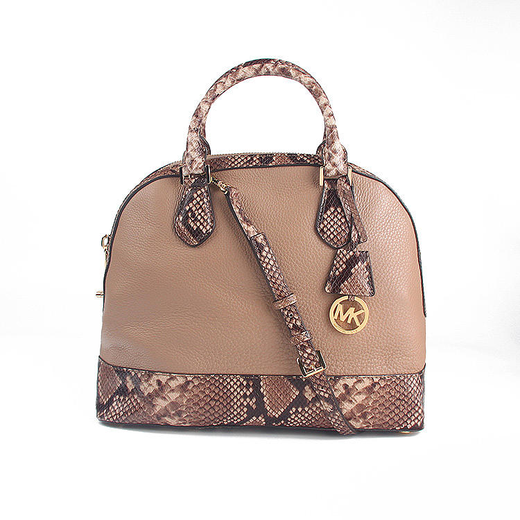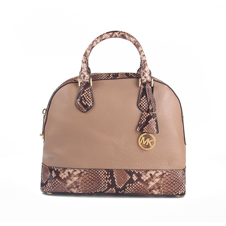 MK 30T5GS0S3N 卡其色蛇皮纹配色真皮手提单肩贝壳包