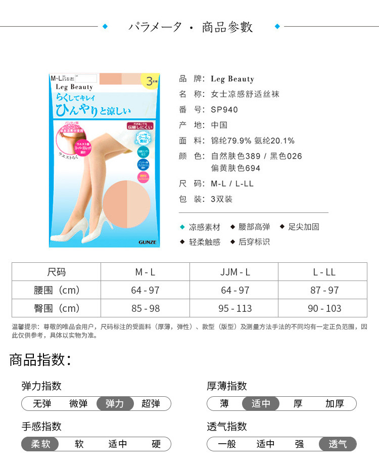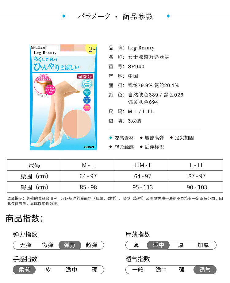 【女款】 3双装防脱丝郡是女士丝袜春夏薄款防脱丝高弹连裤袜美腿女袜