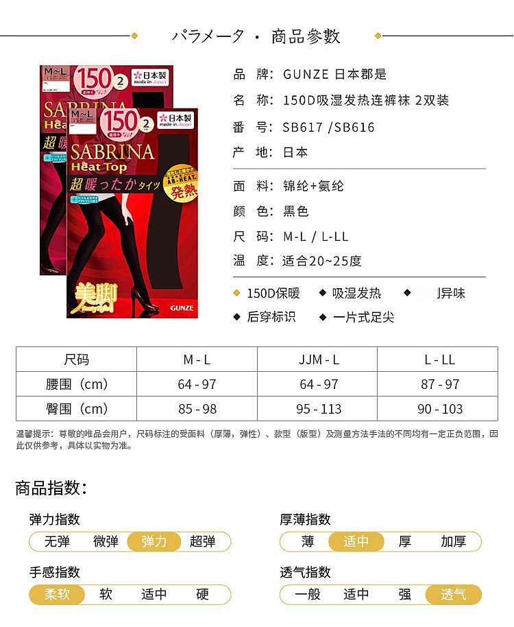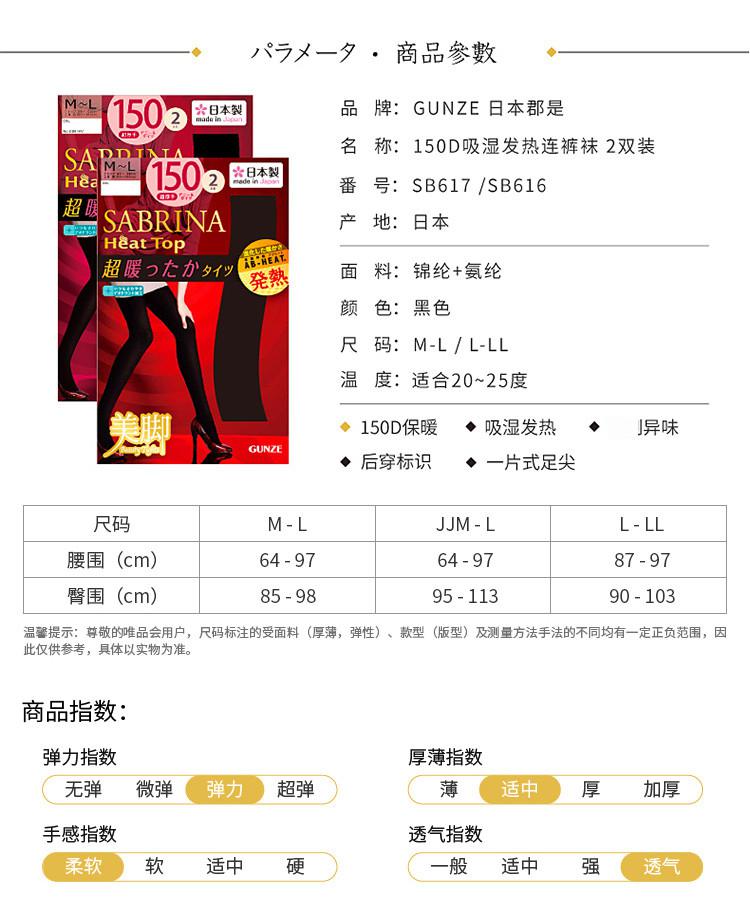 【女款】 日本制2双装150D郡是女士丝袜春秋美腿保暖连裤袜女袜