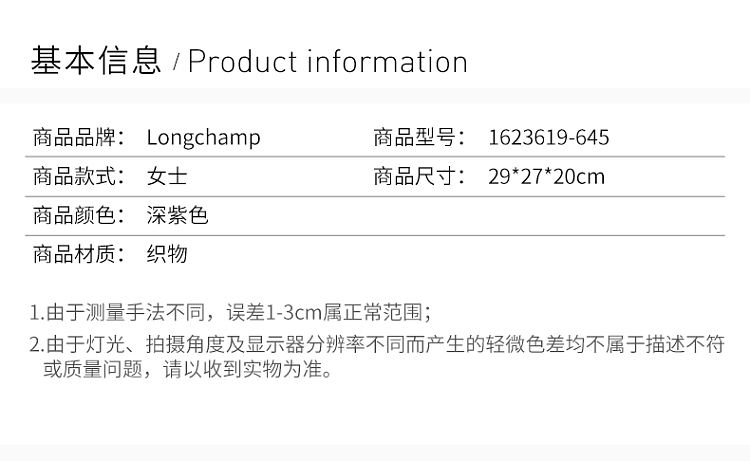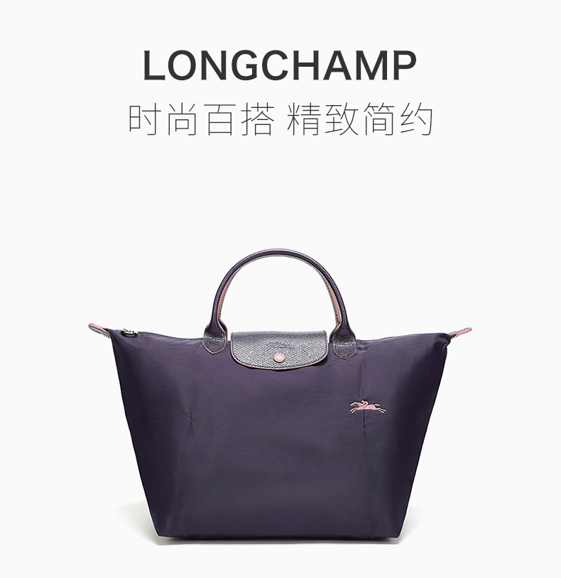 【女款】 LONGCHAMP女士深紫色尼龙手提包1623619-645
