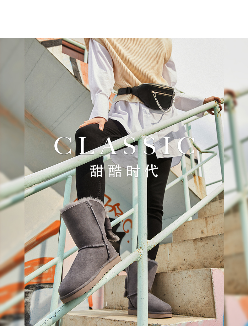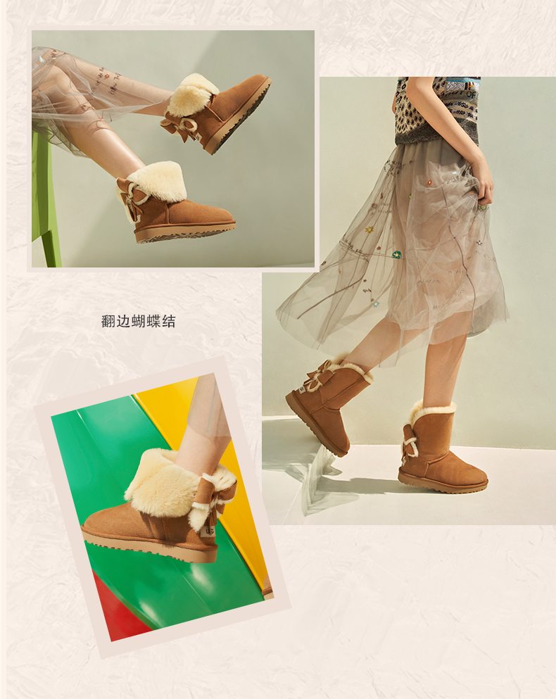 产品系列:生活休闲;鞋帮材质:多种材质拼接 ;内里:皮毛一体;跟高:1-3cm;跟型:平跟;短筒(筒高20cm)