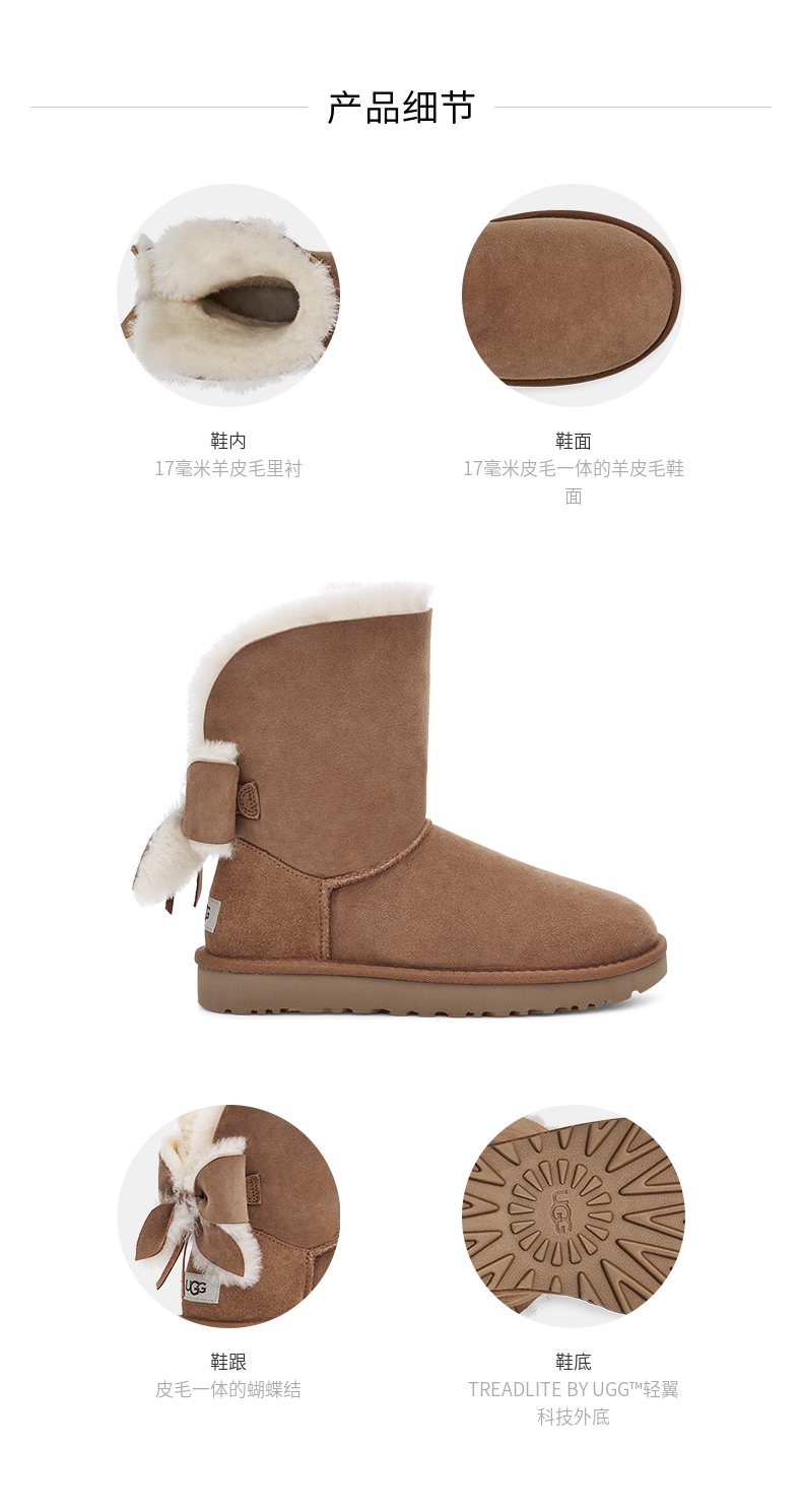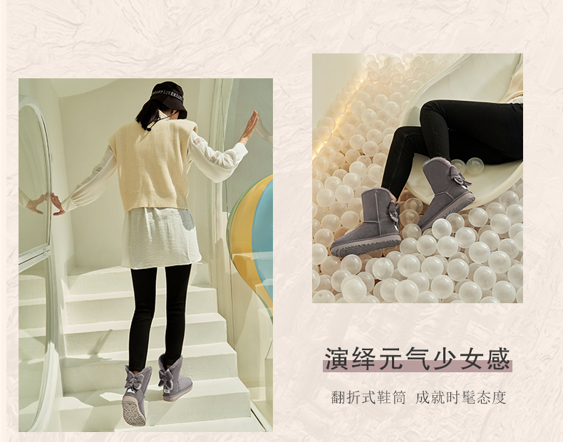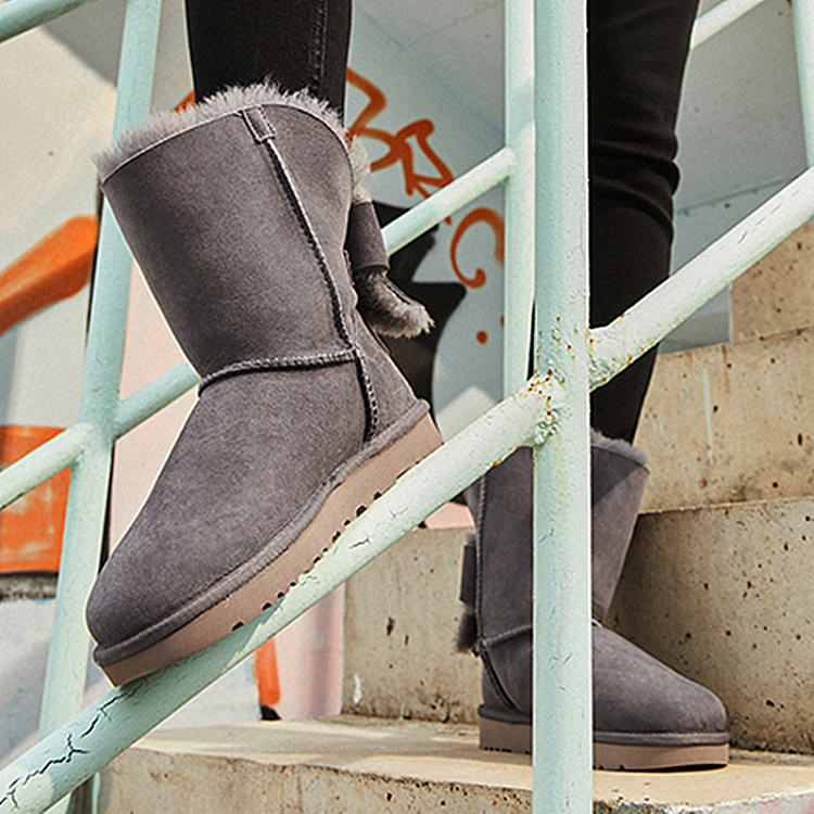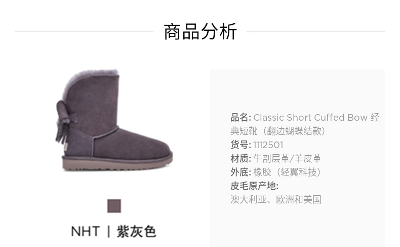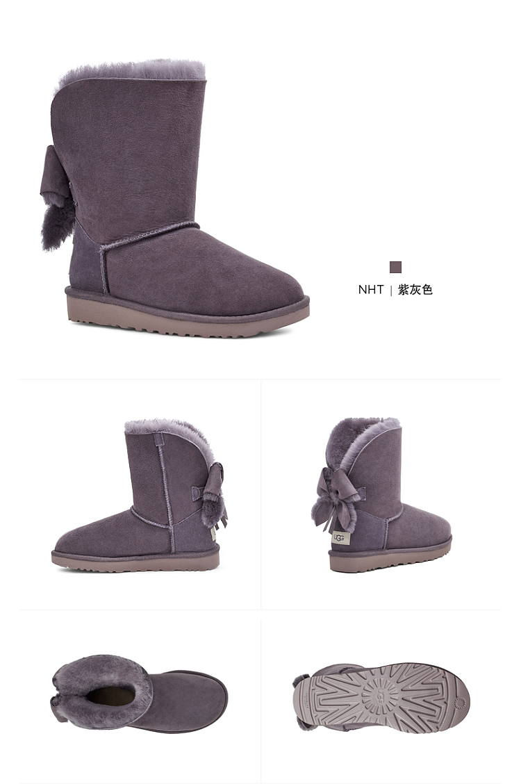 【女款】 UGG 秋冬女士经典靴翻边蝴蝶结经典雪地靴 灰紫色
