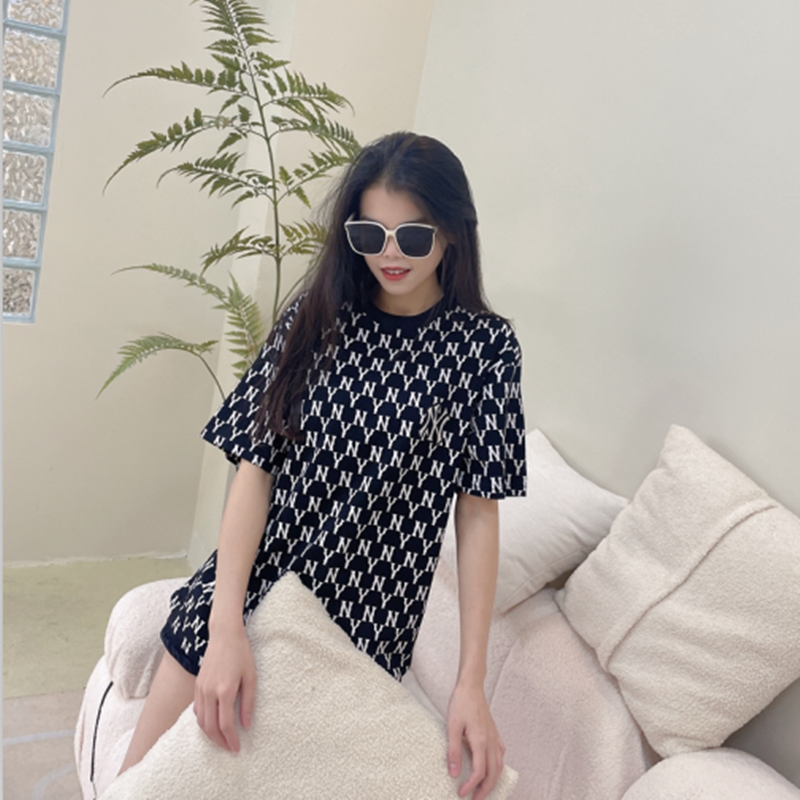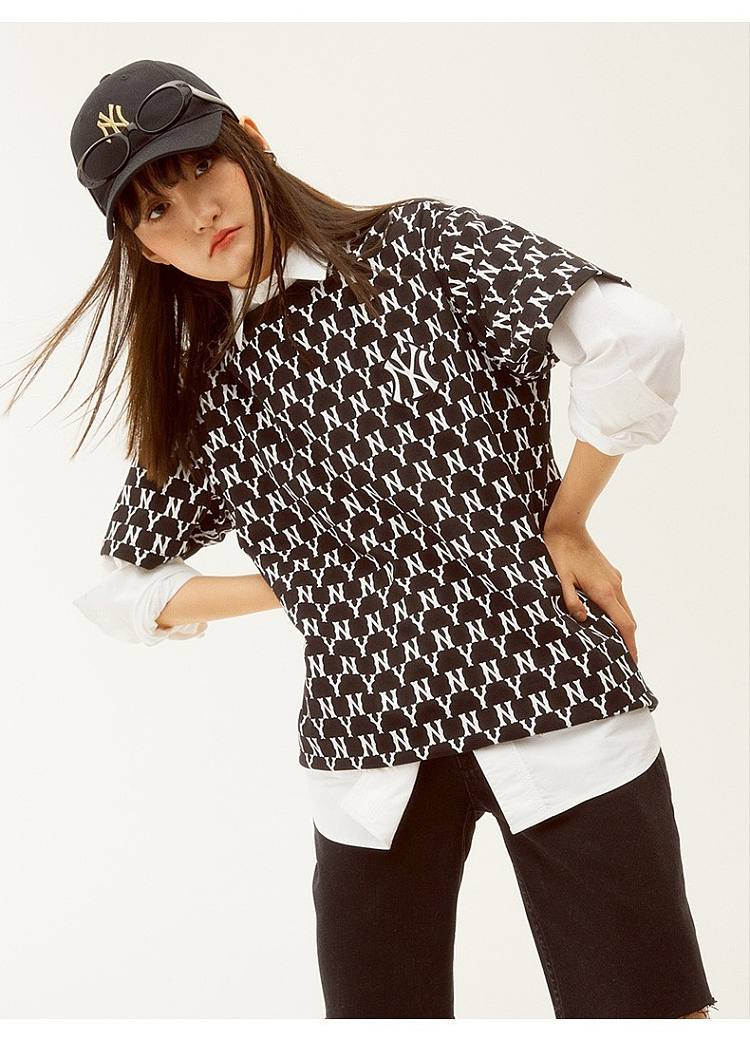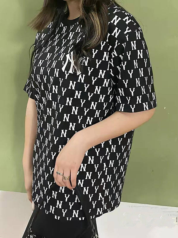 【男女通款】 韩国MLB 纽约洋基队满标印花圆领短袖 男女同款 黑色