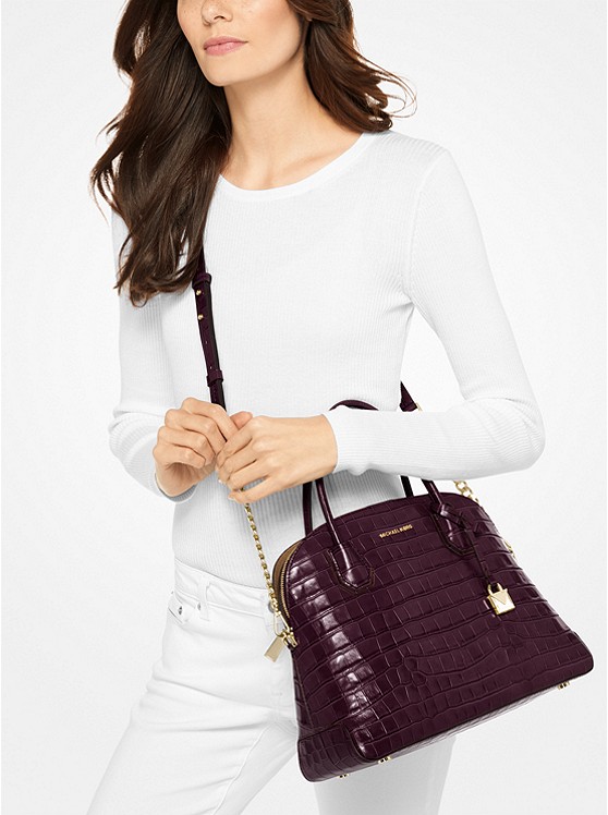 【女款】MK 大号贝壳斜挎包 紫红色 30F7GM9S3E-DAMSON