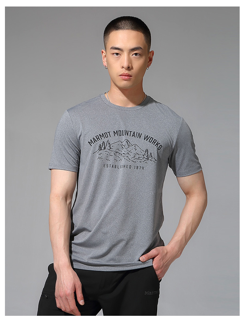【男】MARMOT 男款T恤 短袖棉感速干T 23009 石南浅橄榄灰