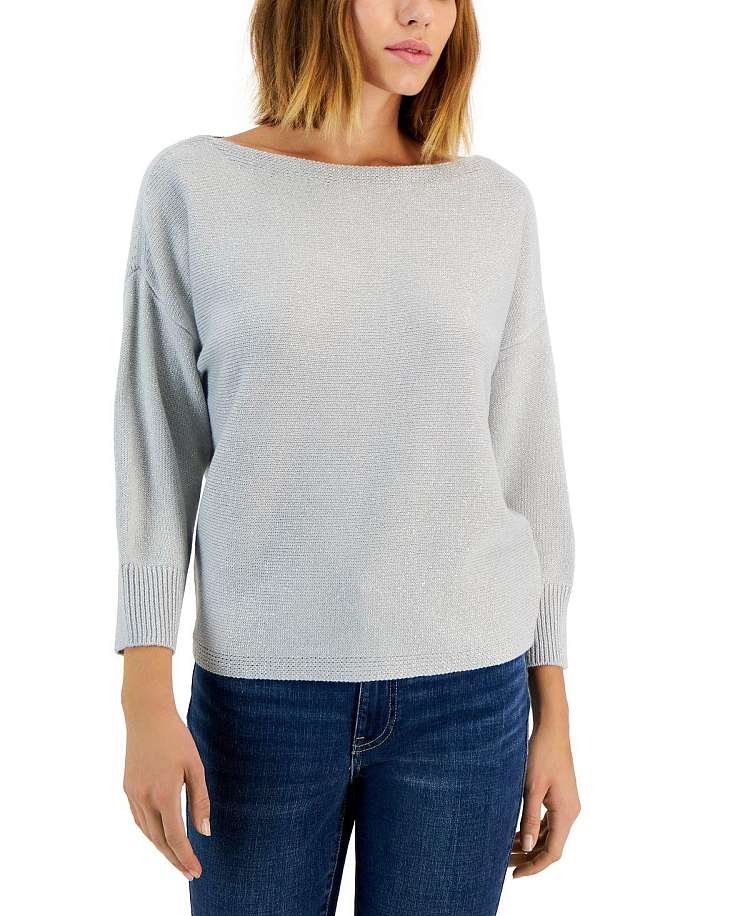 【女款】Boat-Neck Cotton 针织衫 14736816 Pearl Heather Grey