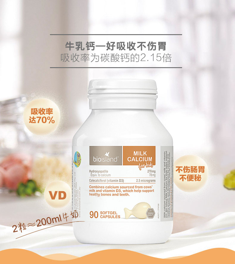 澳洲Bio乳钙island乳钙婴幼儿提取天然牛乳儿童婴儿牛奶乳钙90粒