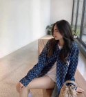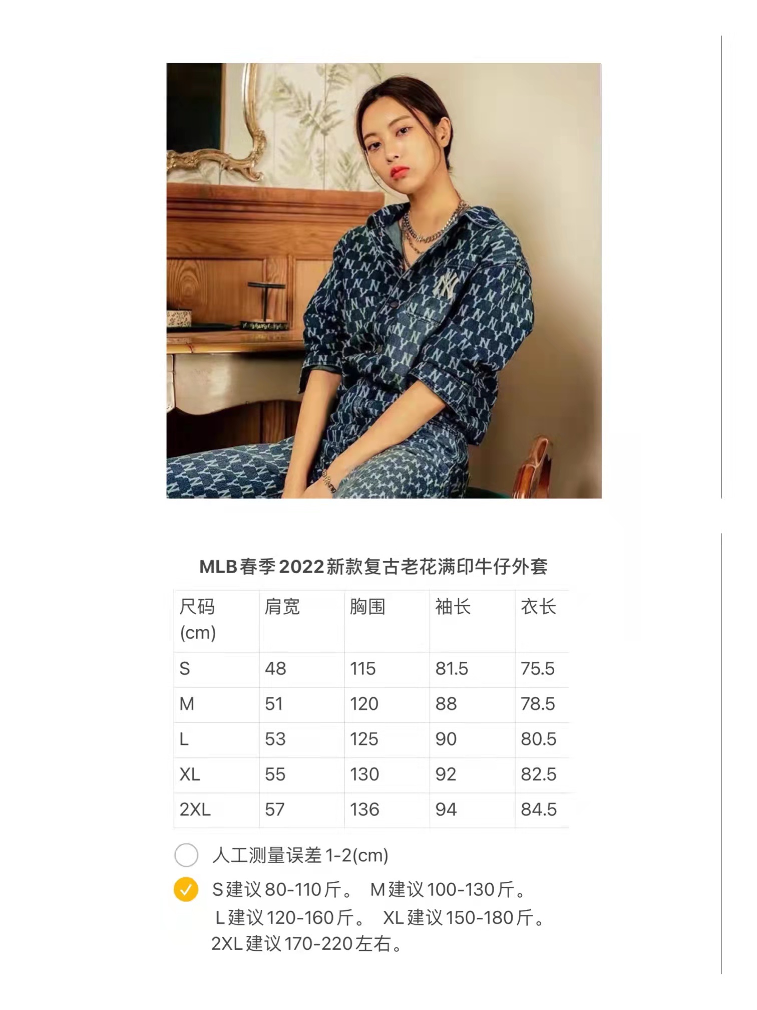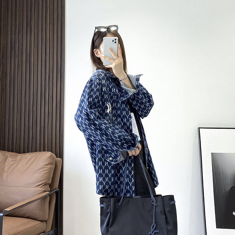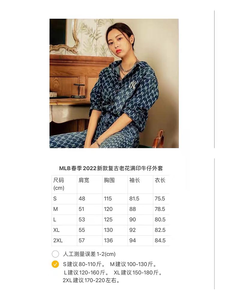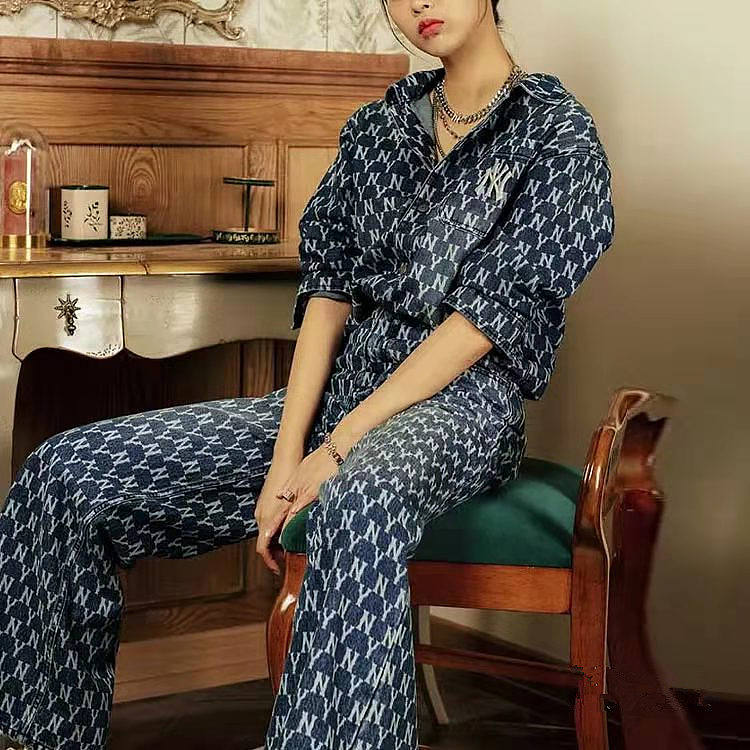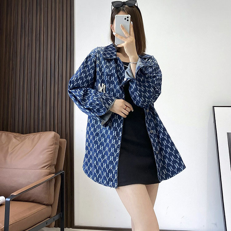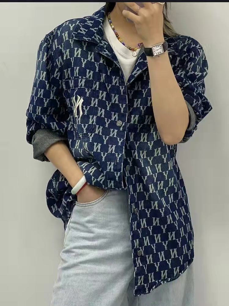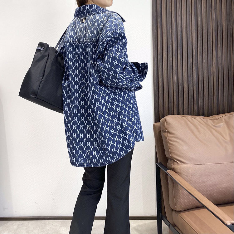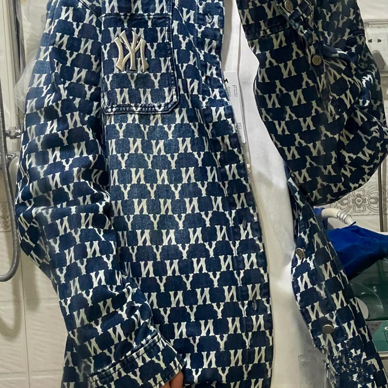 【男女通款】 韩国MLB2022新款 纽约洋基队老花满印牛仔衬衫外套 男女同款 蓝色