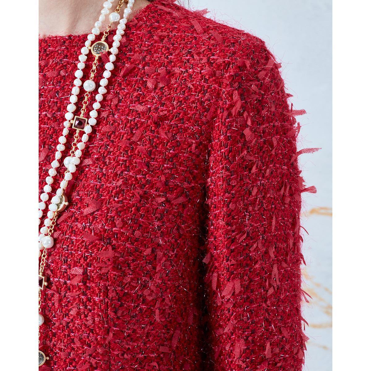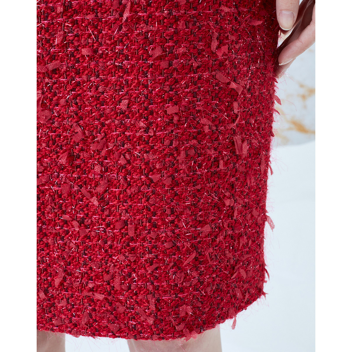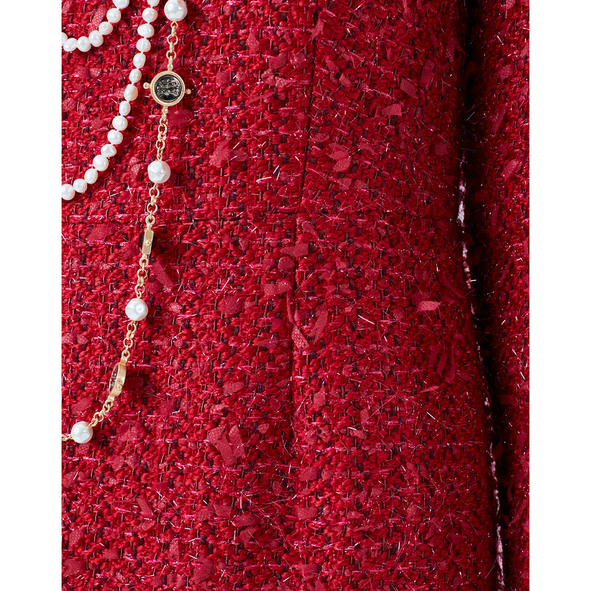 【女款】 新年款粗花呢长袖圆领女士连衣裙