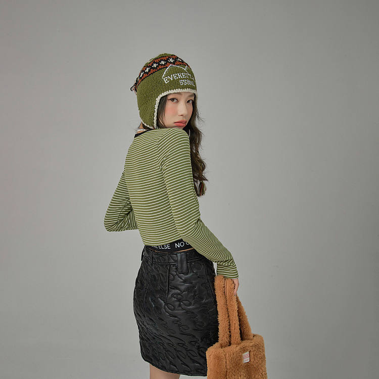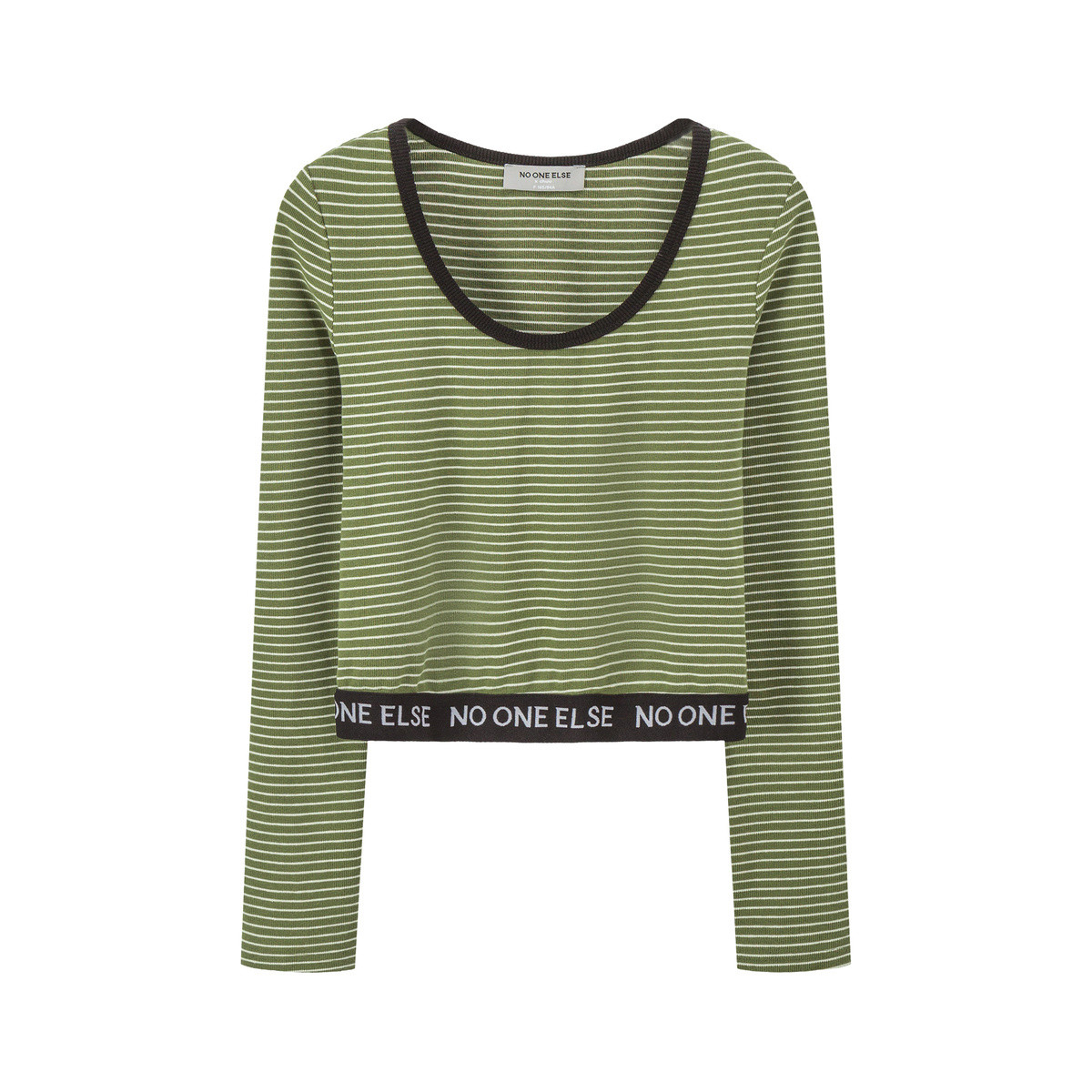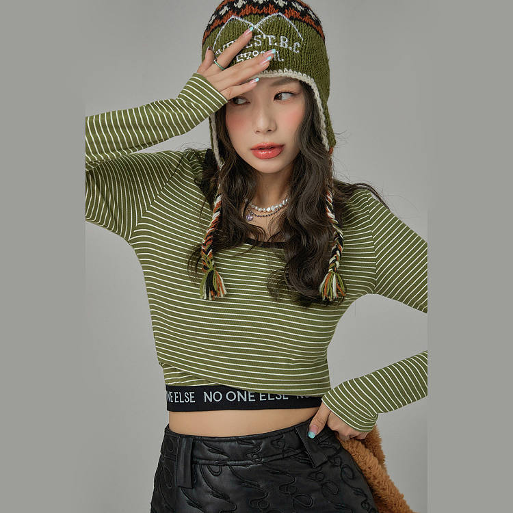 【女款】 辣妹条纹短款T恤女冬修身显瘦别致上衣