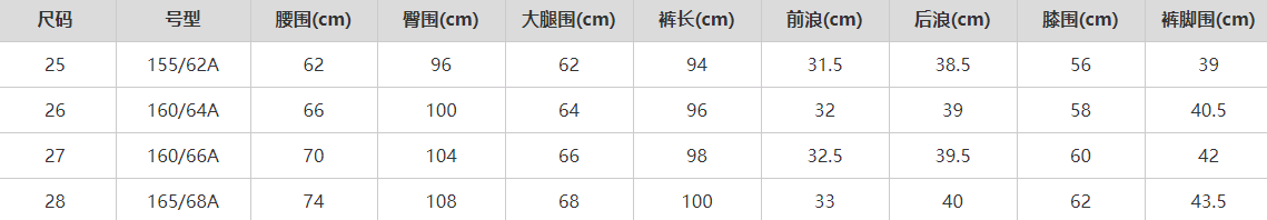 尺码信息