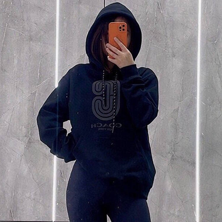 COACH 2023新款黑色C标连帽卫衣 男女同款
