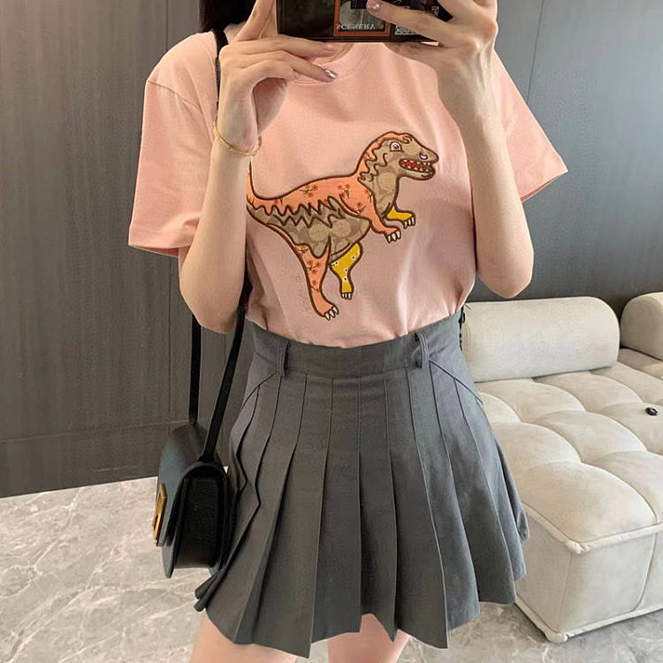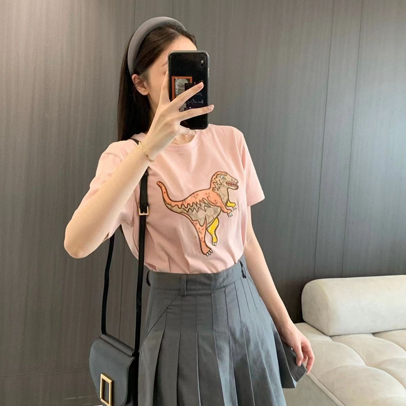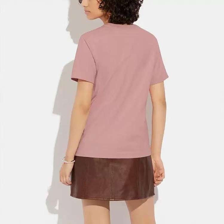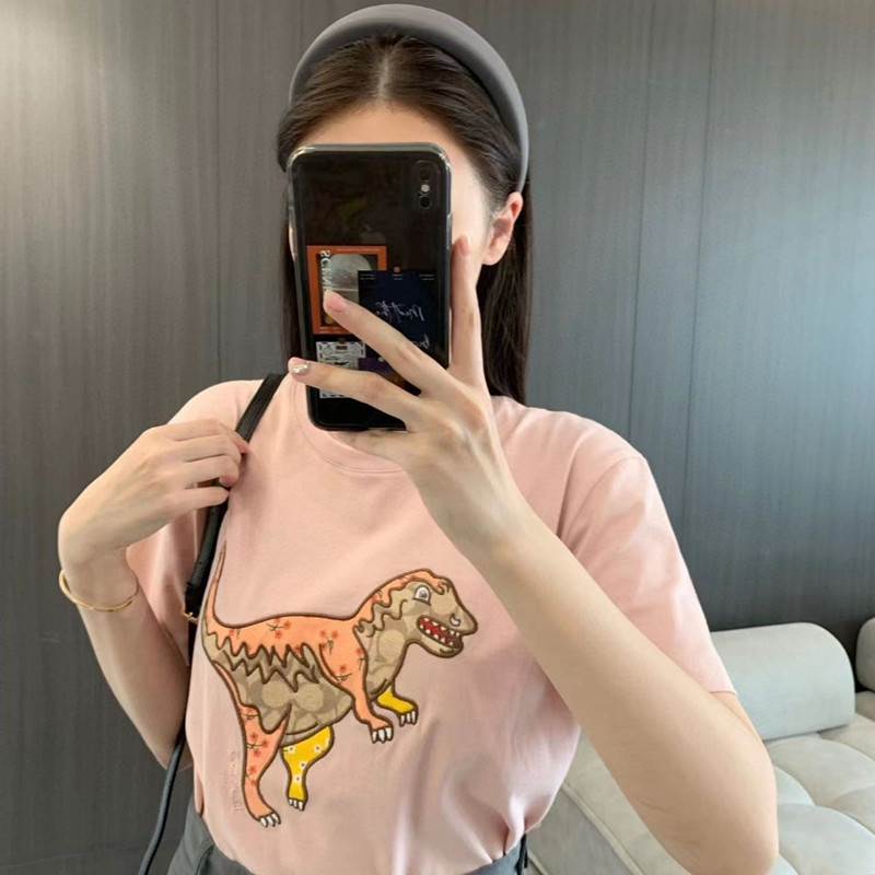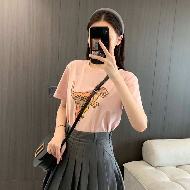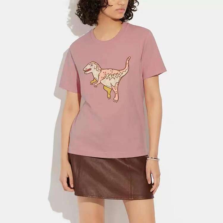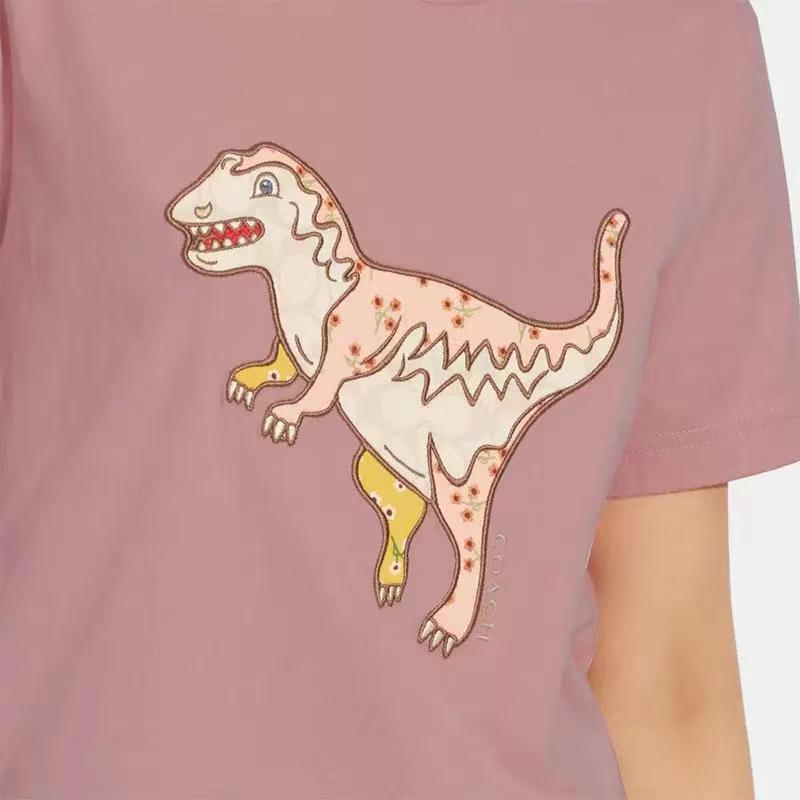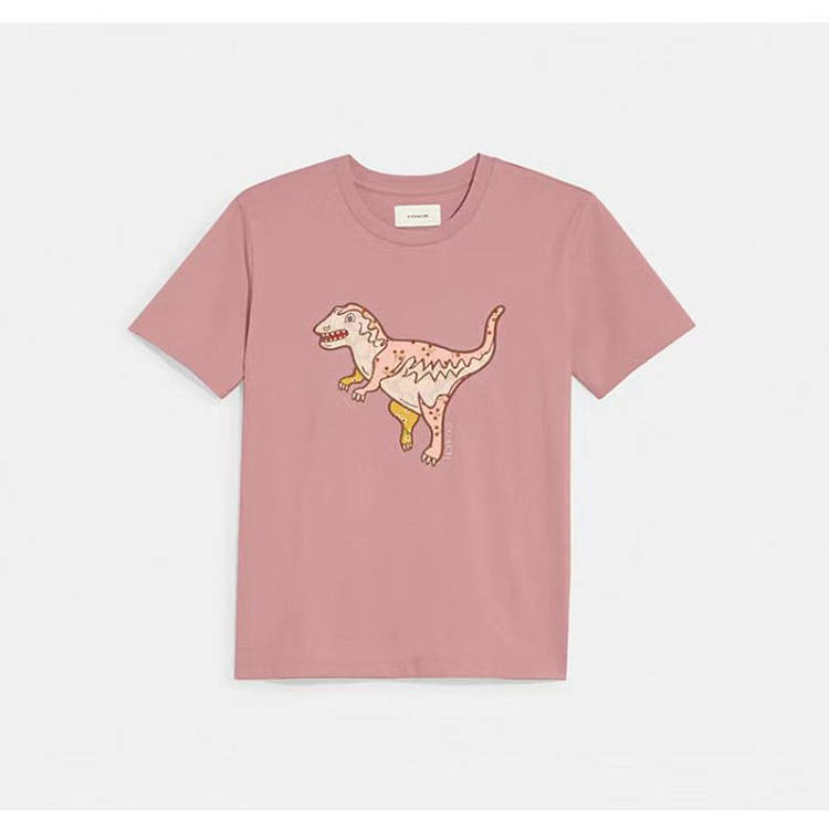 Coach粉色刺绣小恐龙短袖 T恤