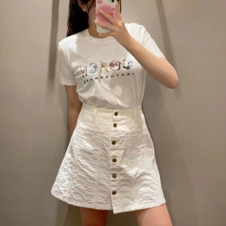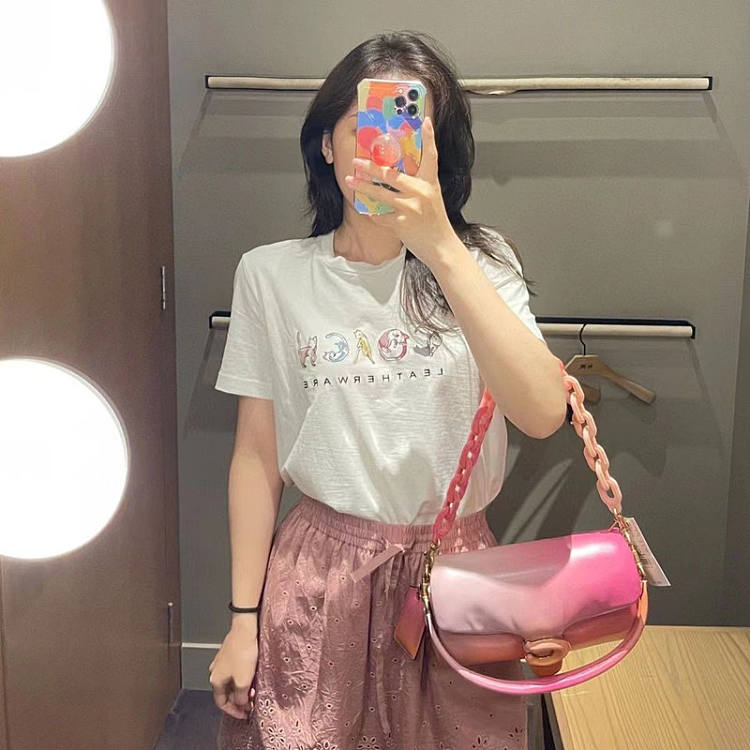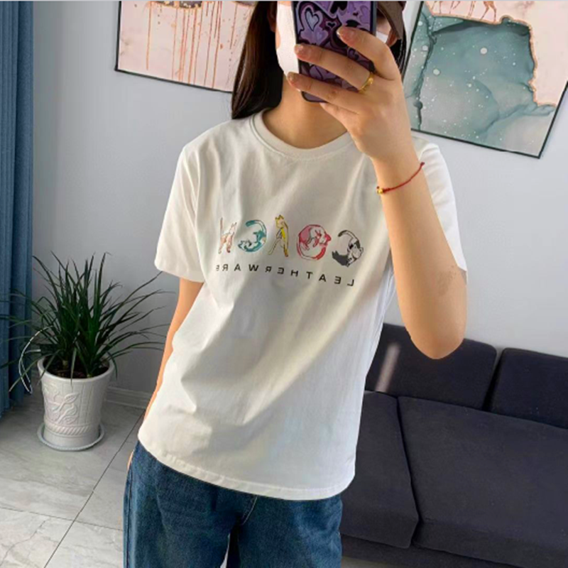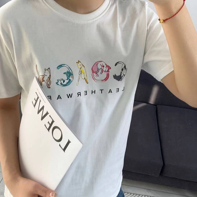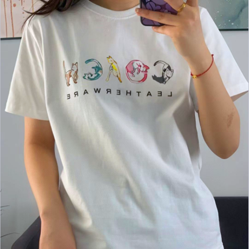 Coach寇驰情侣新款炫彩猫咪字母印花短袖T恤 男女同款