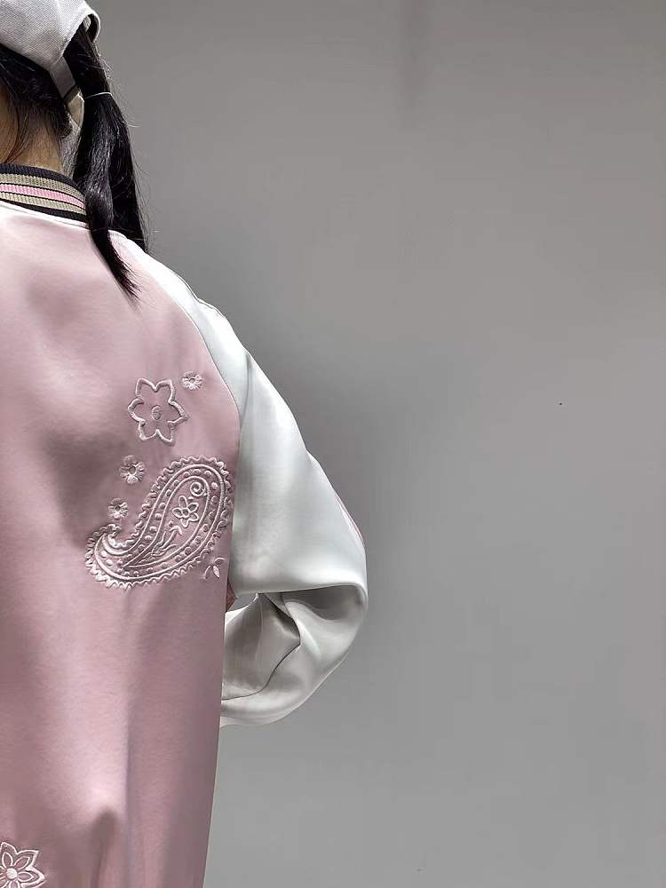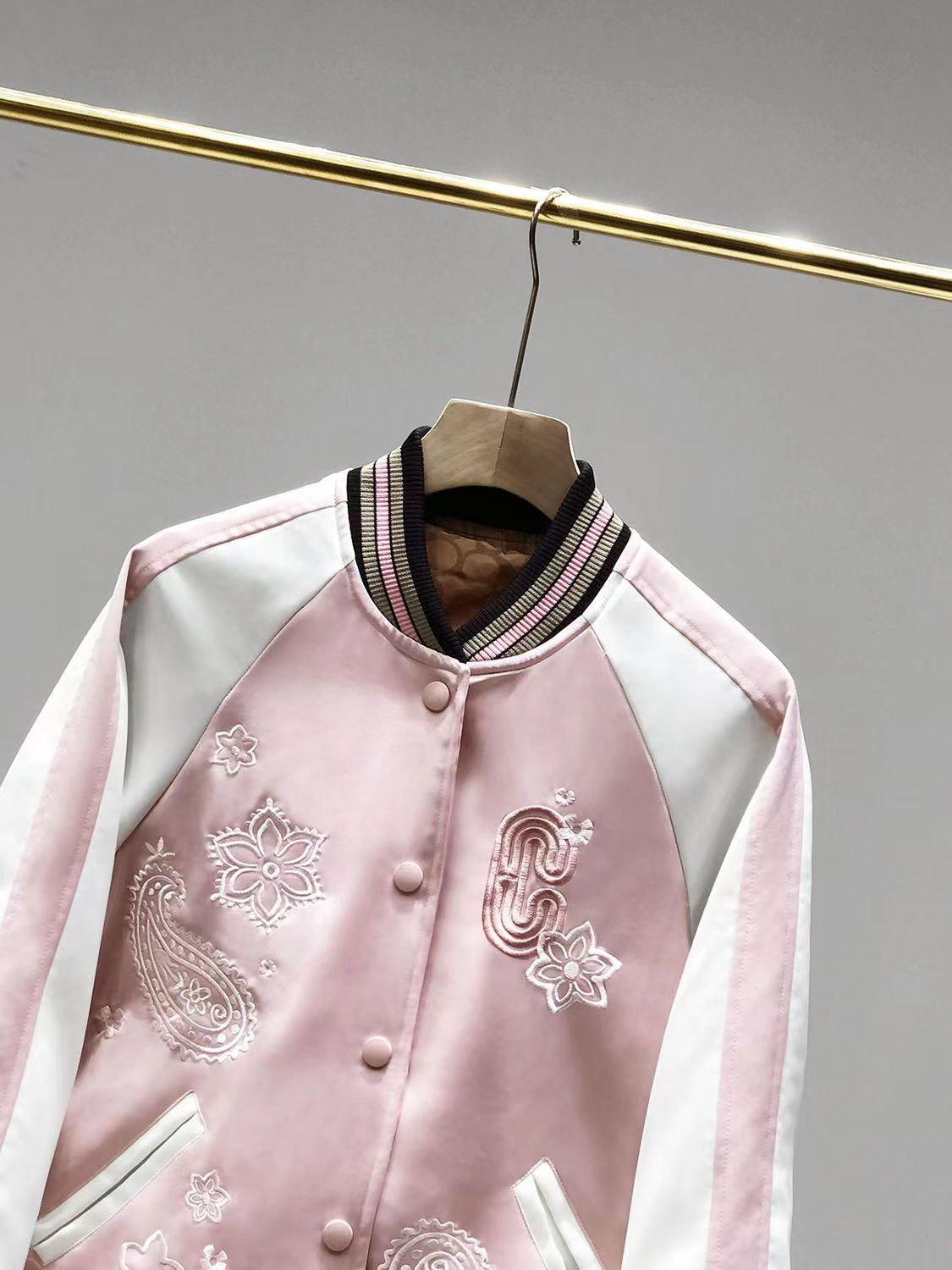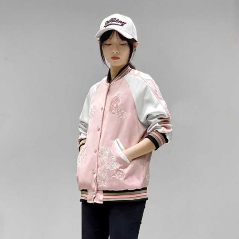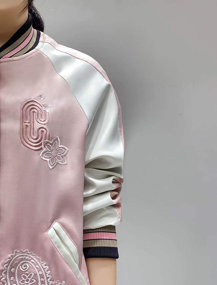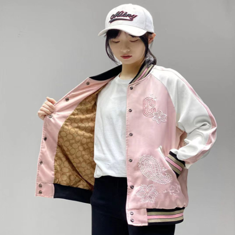 Coach新款马车粉色樱花腰果花刺绣棒球服外套