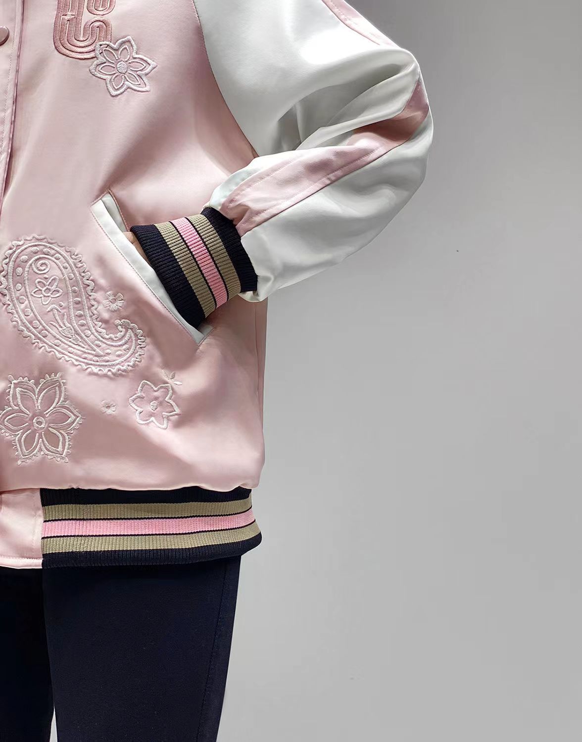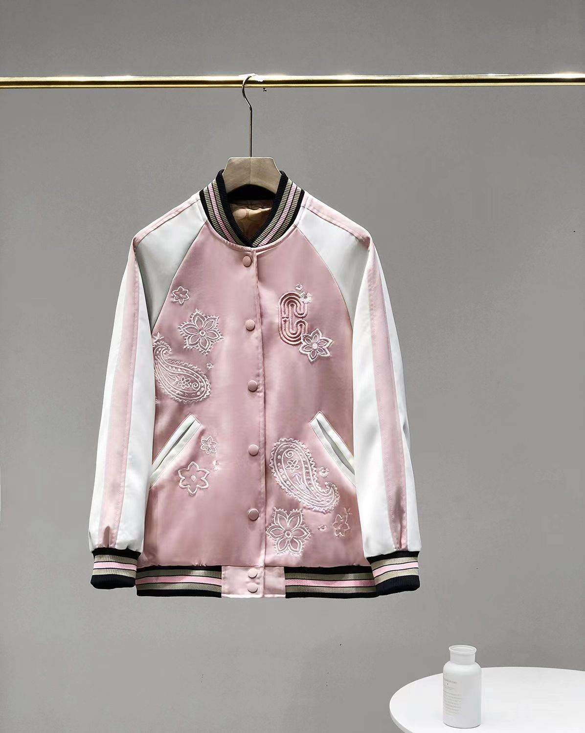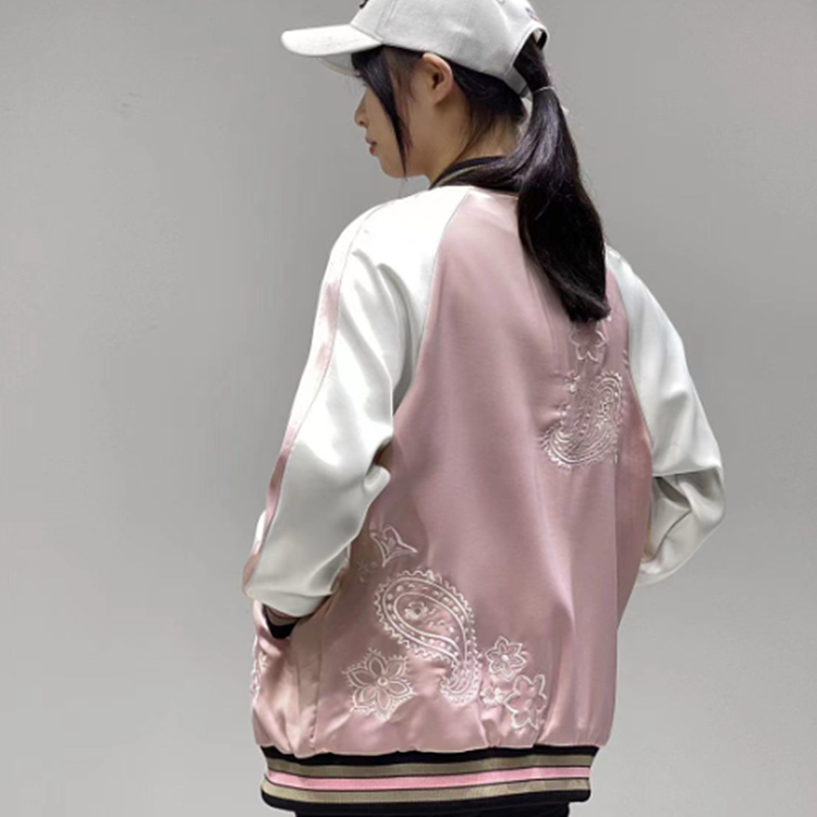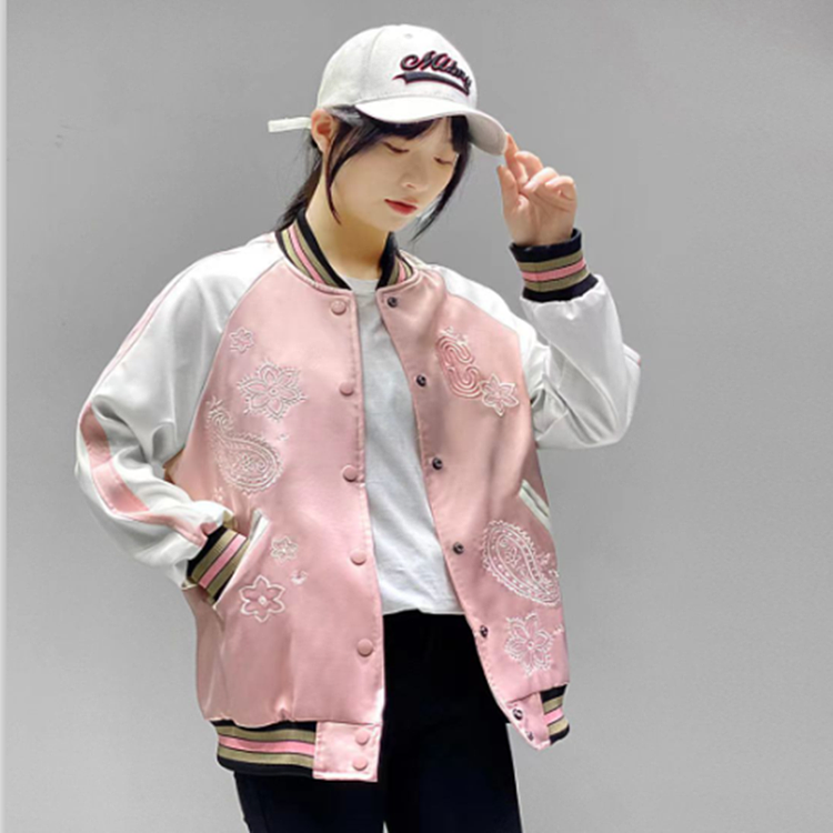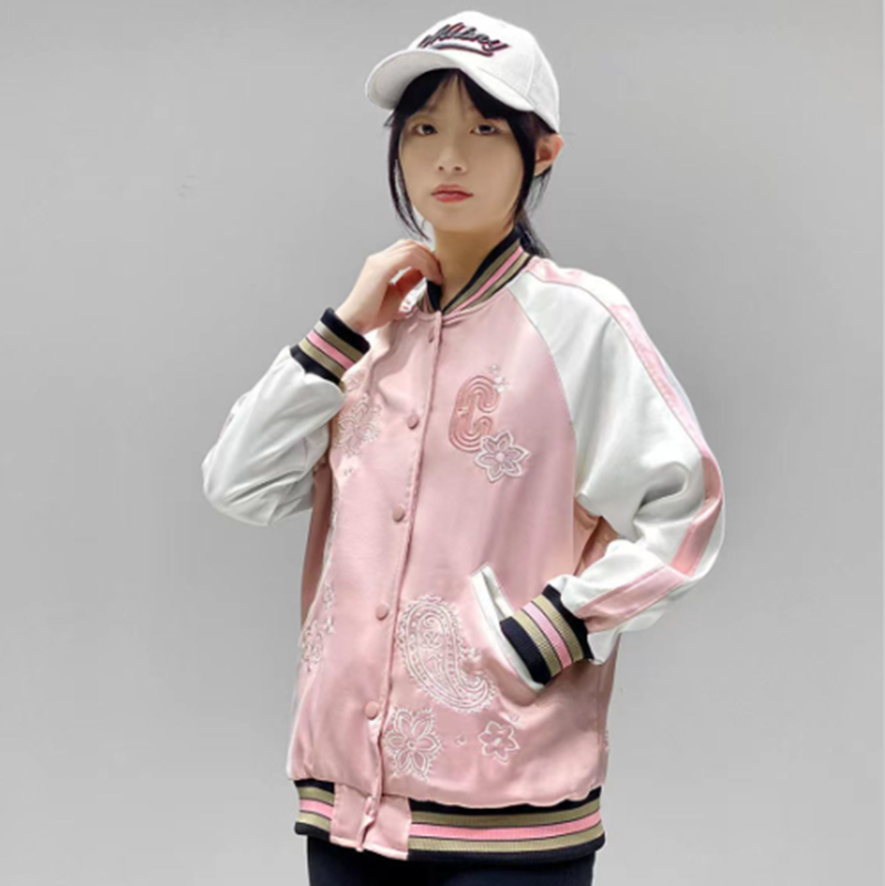Coach新款马车粉色樱花腰果花刺绣棒球服外套