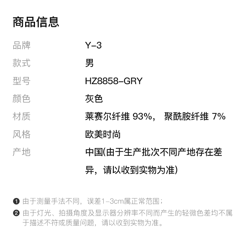 【男款】 Y-3男士短裤灰色HZ8858-GRY
