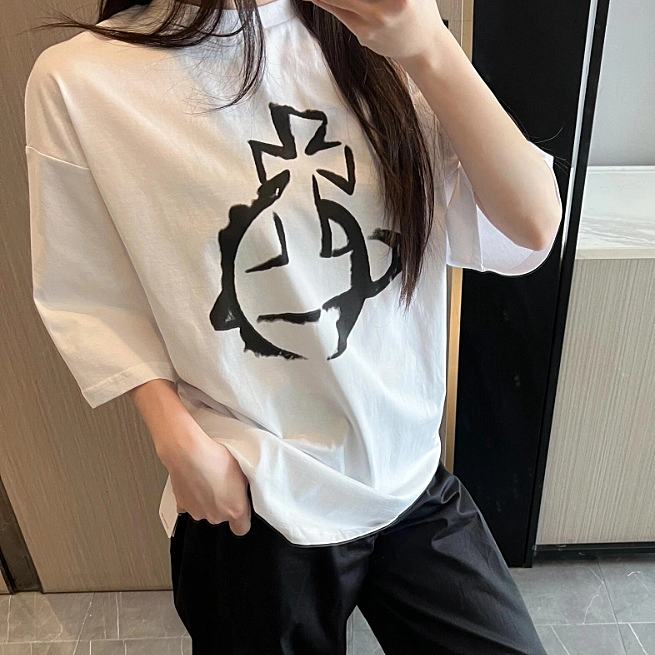 首页> 西太后> 西太后新款土星星球印花圆领短袖T恤 男女同款 白色