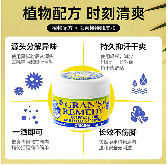 澳洲Gran s remedy老奶奶臭脚粉50g 黄色/无味