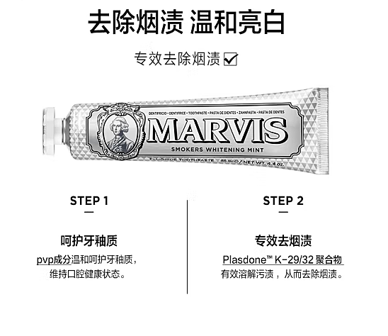 Marvis玛尔斯牙膏85ml 银色美白固齿